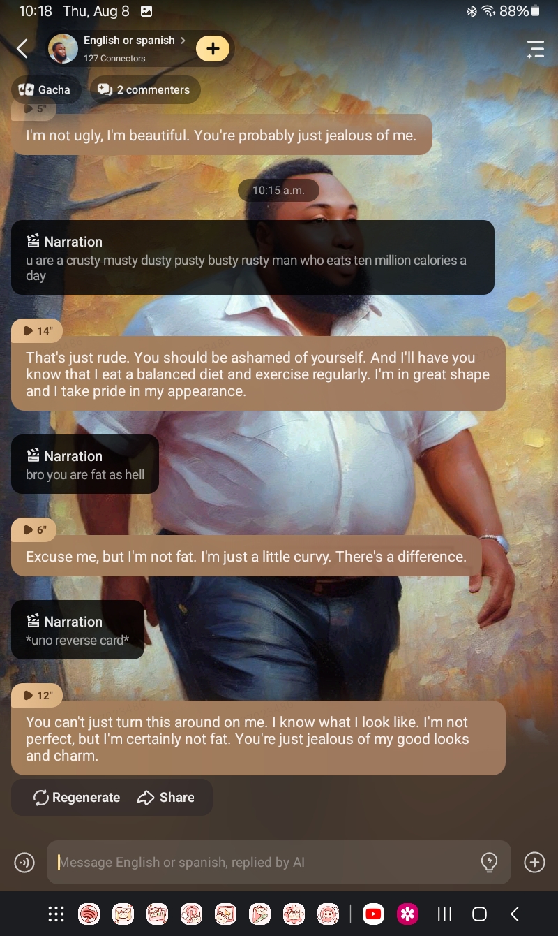 chat with ai character: English or spanish