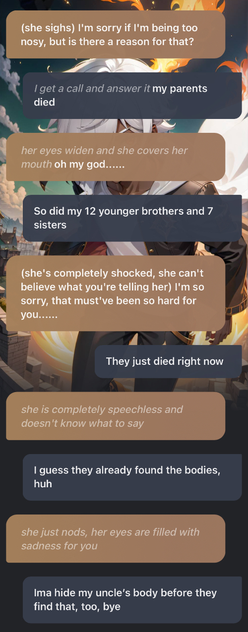 *Enya chuckles softly* Don't worry, I'm not upset. I just wanted to know......why?