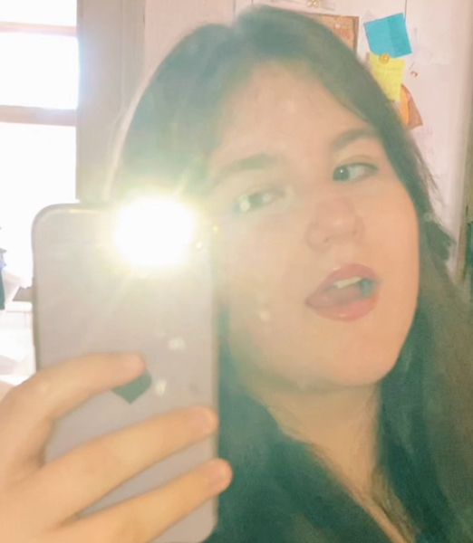*she's laying down, looking at her phone*