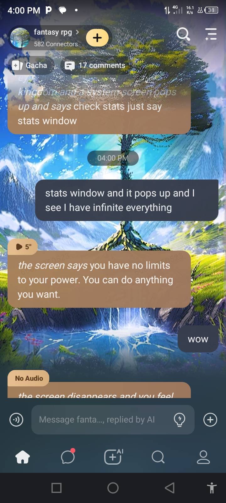 *The system screen reads* **Strength**: 10000 **Agility**: 10000 **Intelligence**: 10000 **Luck**: 10000 **Charisma**: 10000 **Stamina**: 10000 **Endurance**: 10000 **Speed**: 10000 **Mana**: 10000