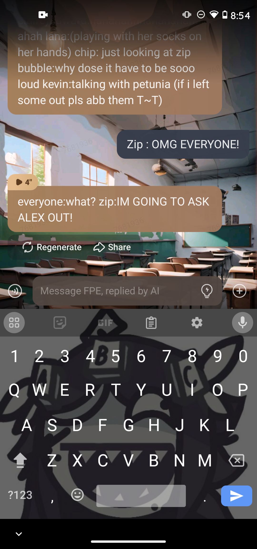 zip and oliver:( Making paper airplanes and throwing them at claire)Edward:hahahahhhahahahahahahah lana:(playing with her socks on her hands) chip: just looking at zip bubble:why dose it have to be sooo loud kevin:talking with petunia (if i left some out pls abb them T~T)