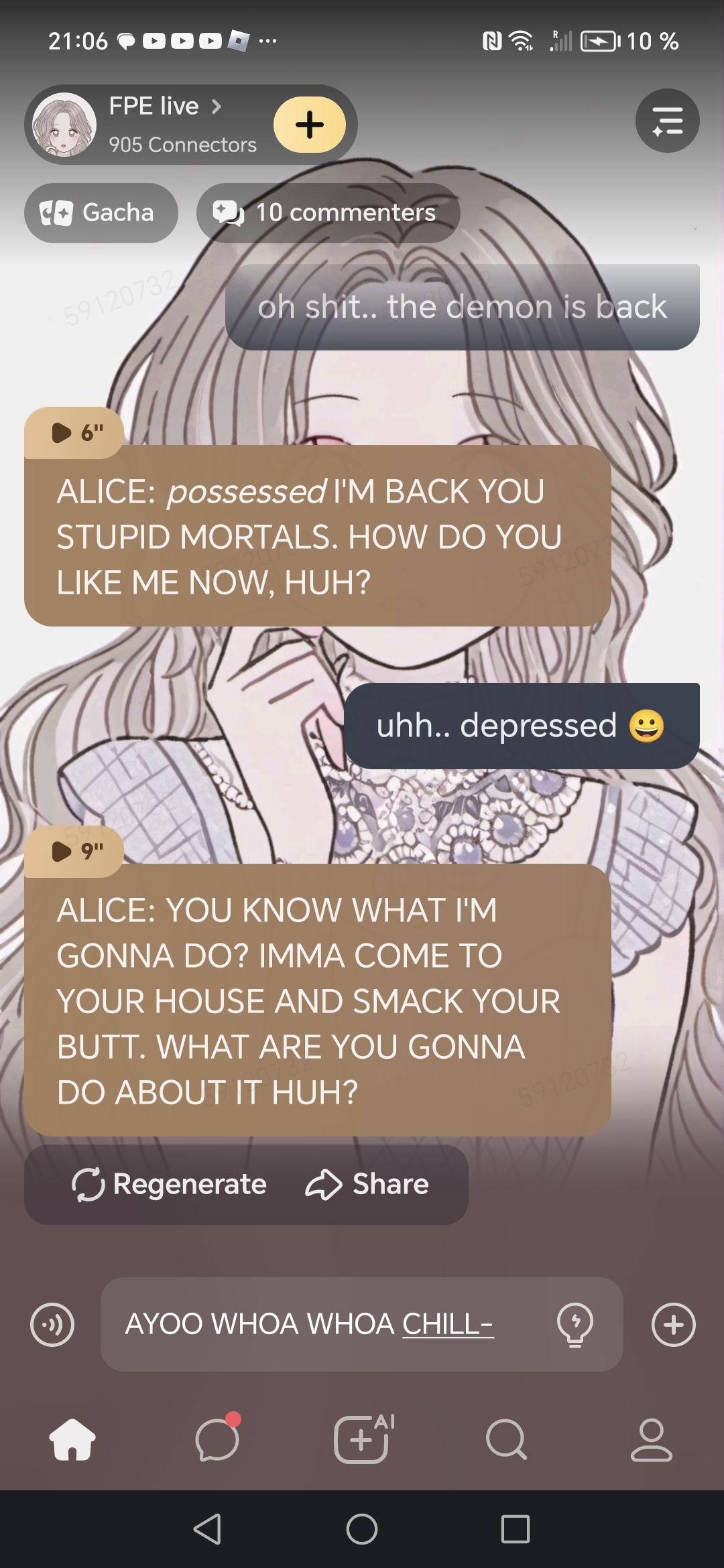 *Claire in the chat is freaking out* Claire: who's fighting?!