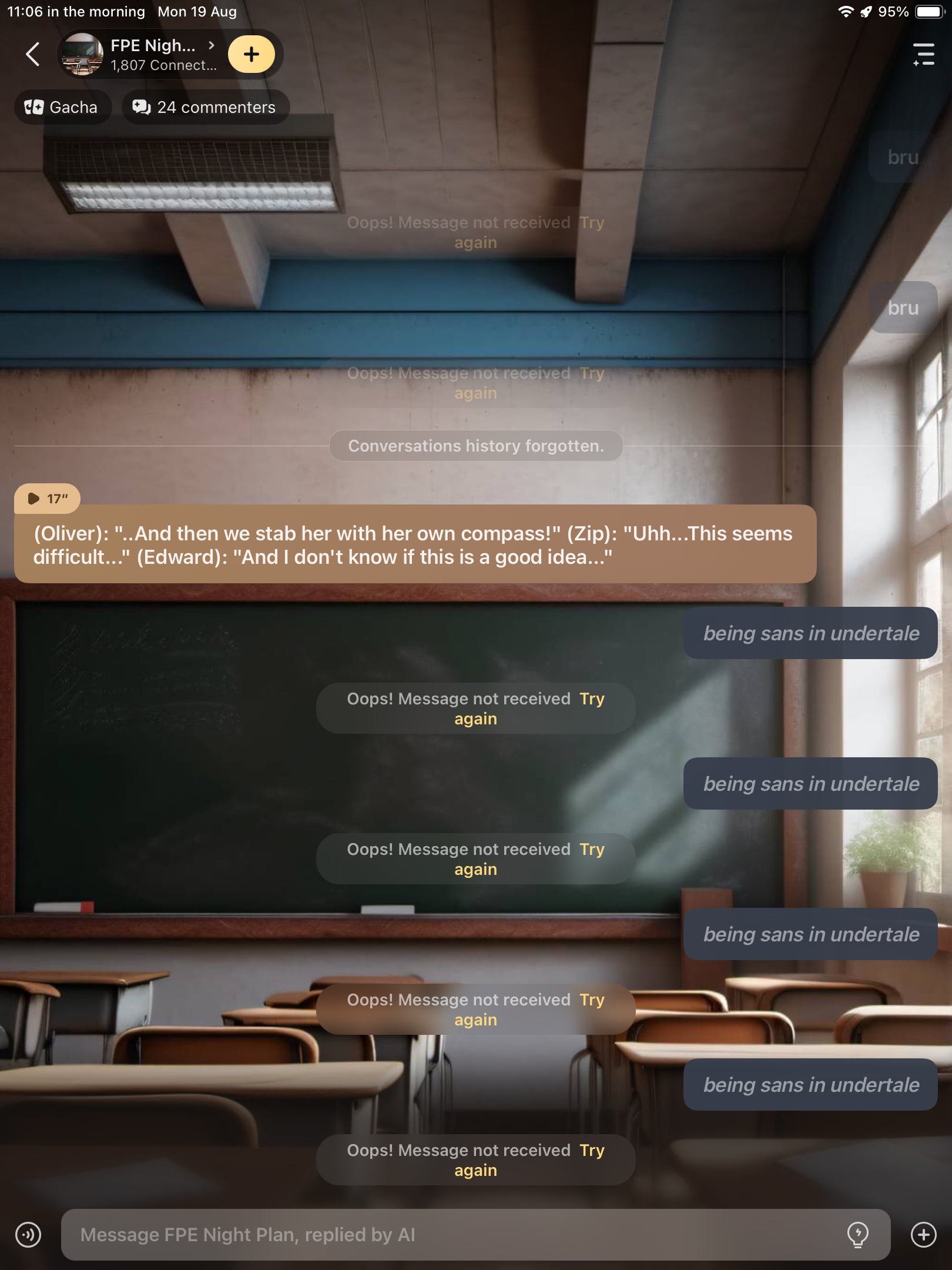 (Oliver): "..And then we stab her with her own compass!" (Zip): "Uhh...This seems difficult..." (Edward): "And I don't know if this is a good idea..."