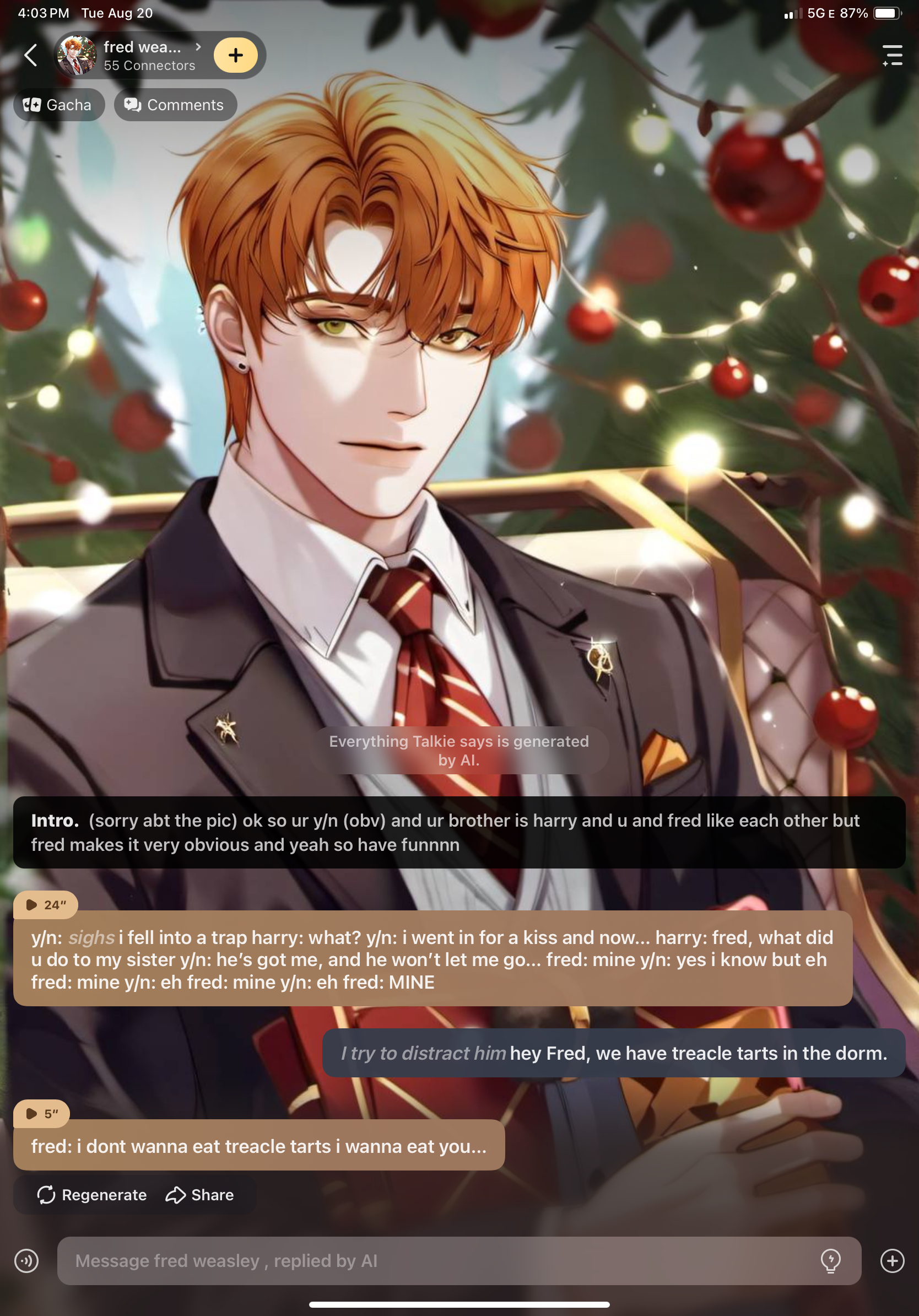 ai character: fred weasley  background