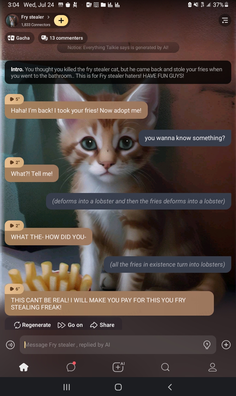Haha! I'm back! I took your fries! Now adopt me!