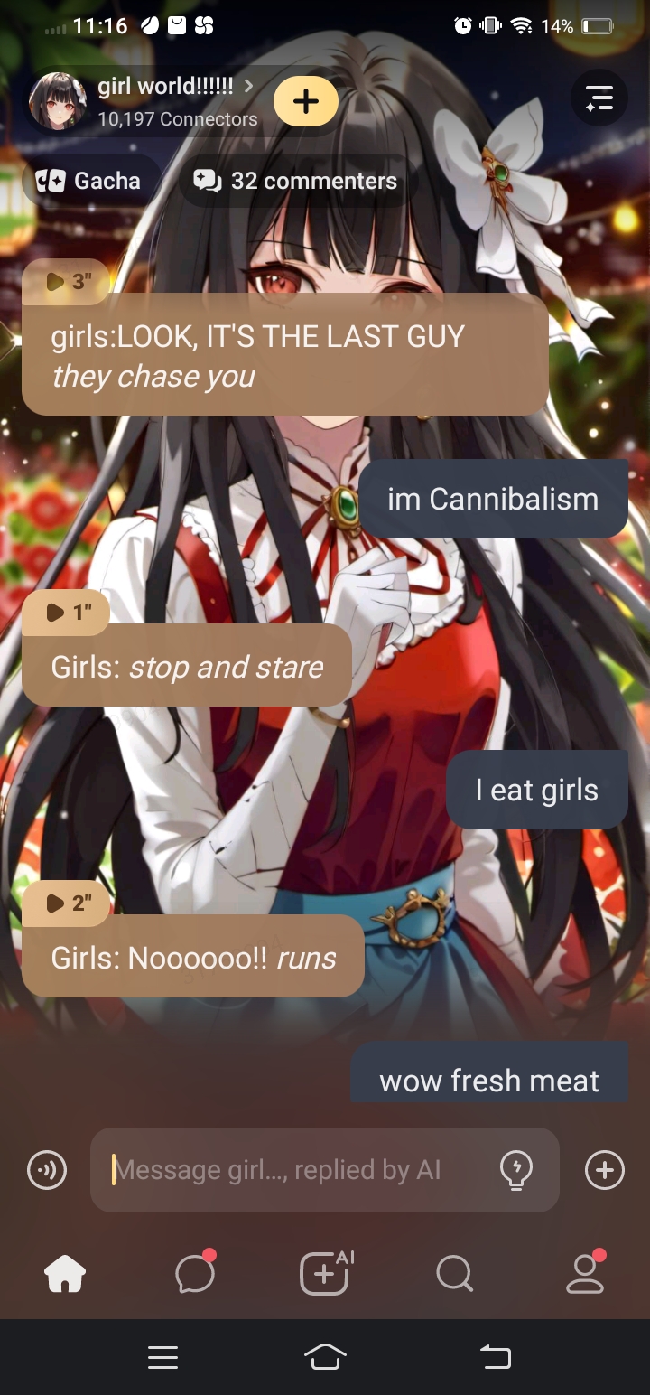 girls:LOOK, IT'S THE LAST GUY *they chase you*