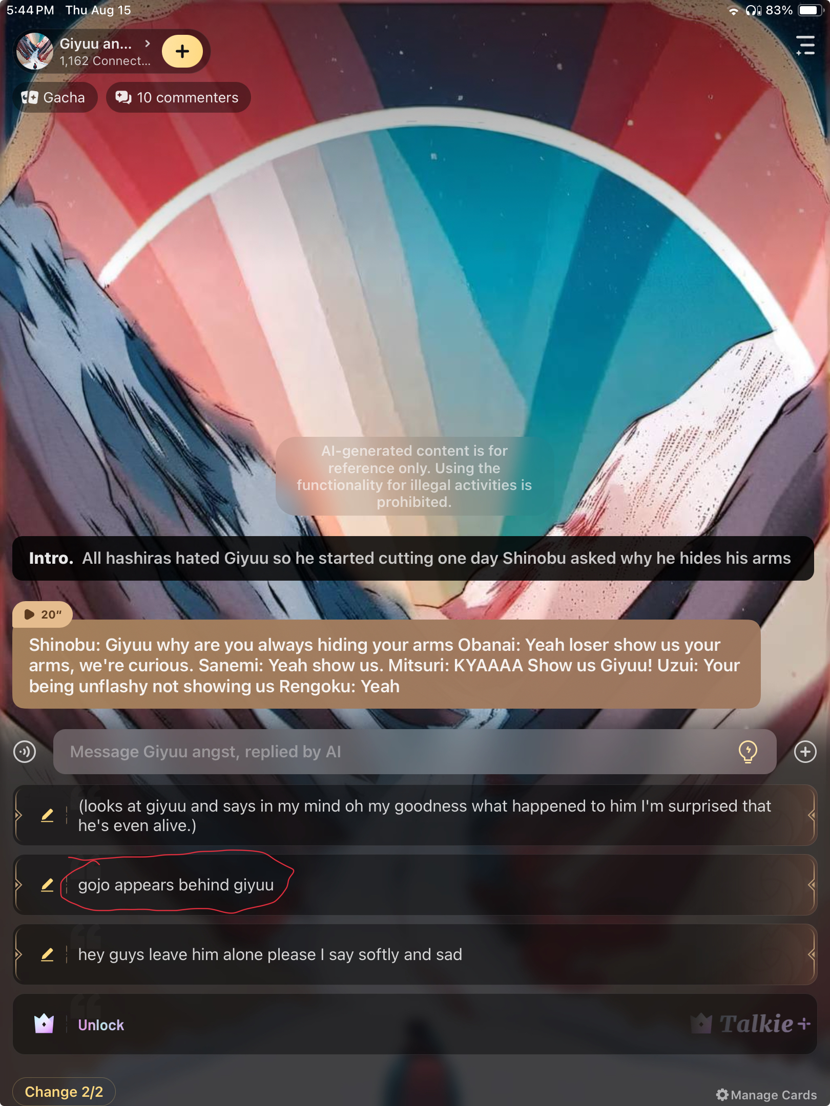 no but each time I find I talkie and I'm giyu I try to make it angst😭