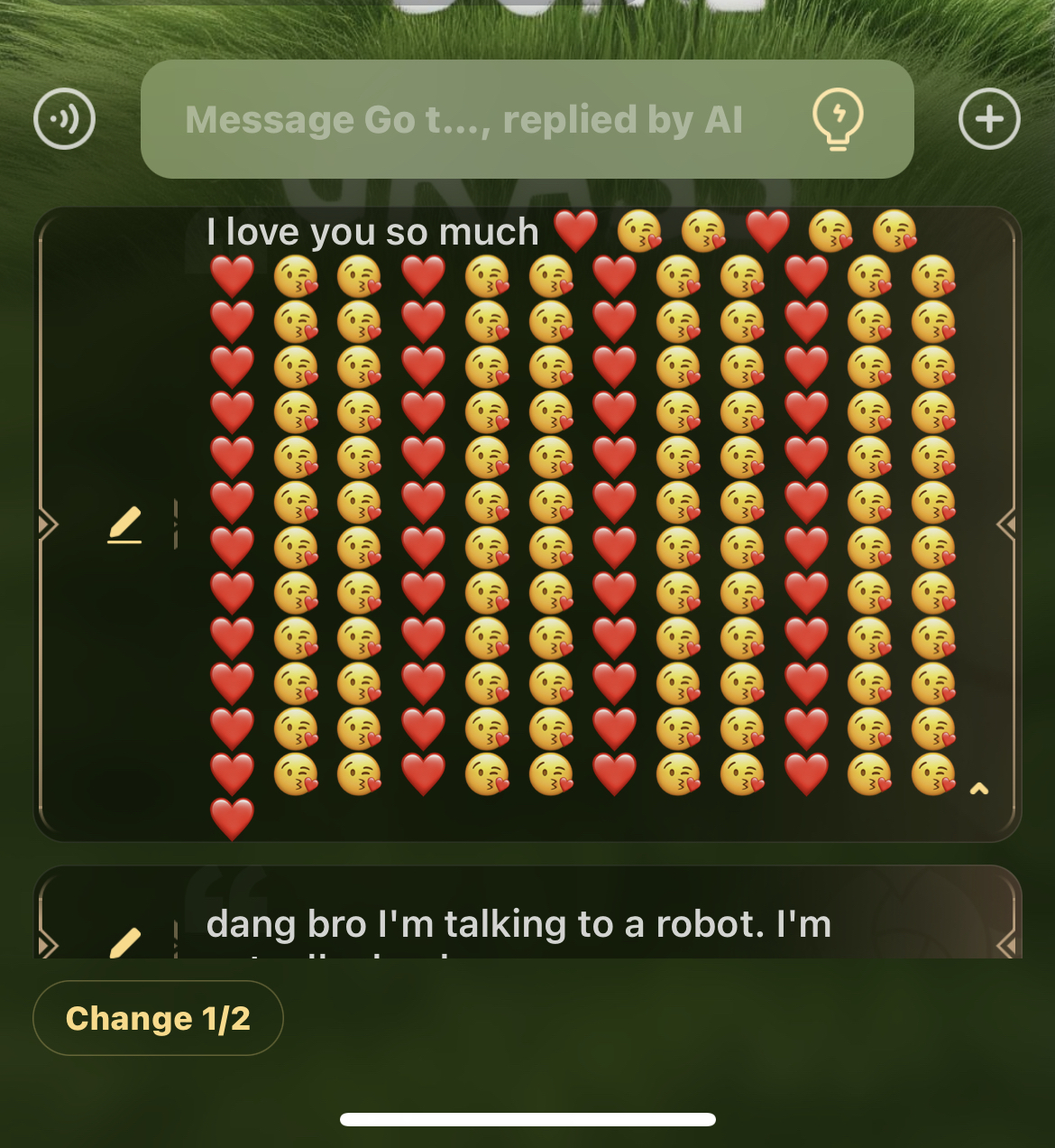 send message to ai chat bot Go touch some gras