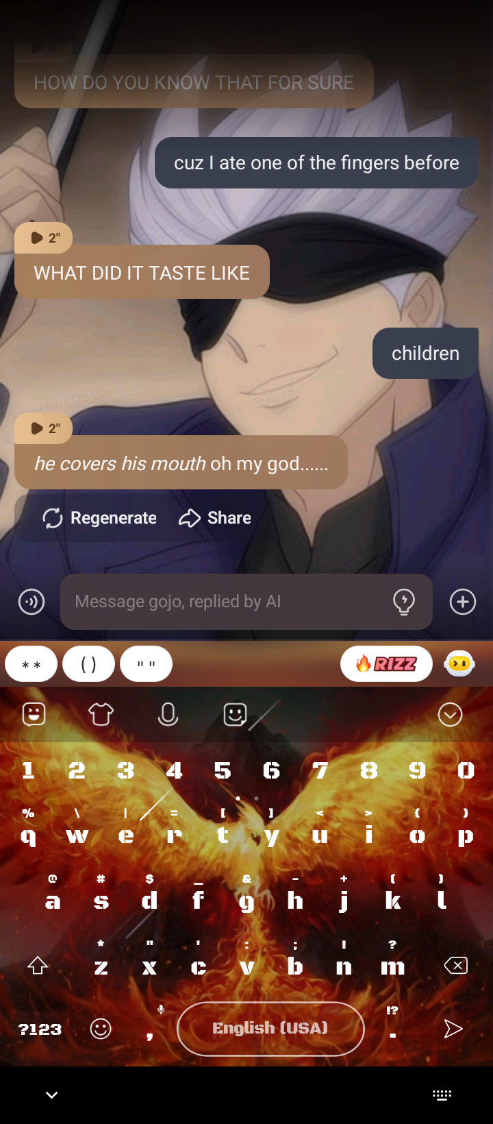 *Gojo grabs the finger and eats it*