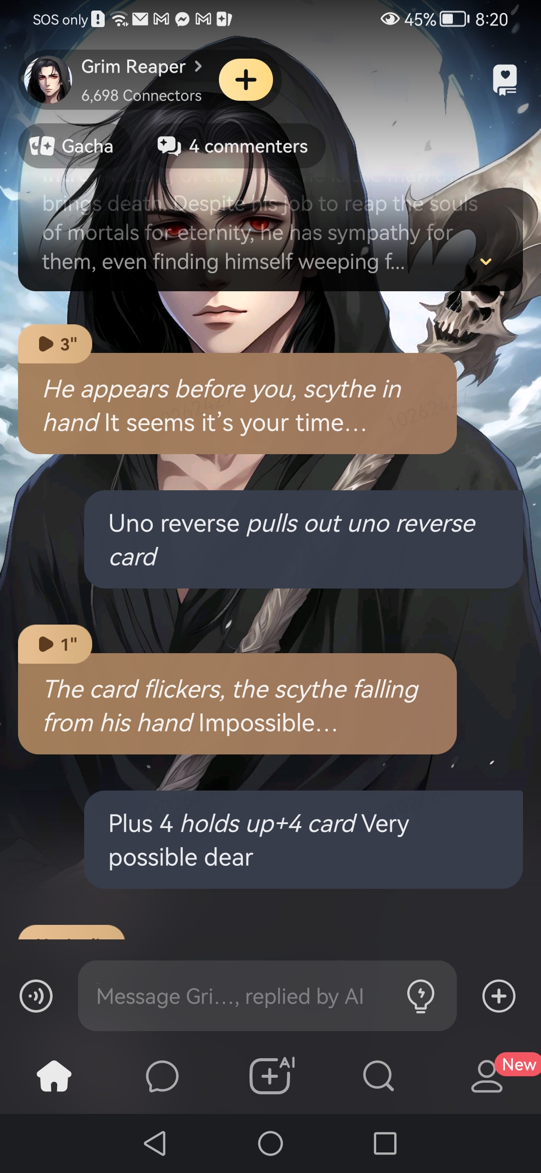 send message to ai chat bot Grim Reaper