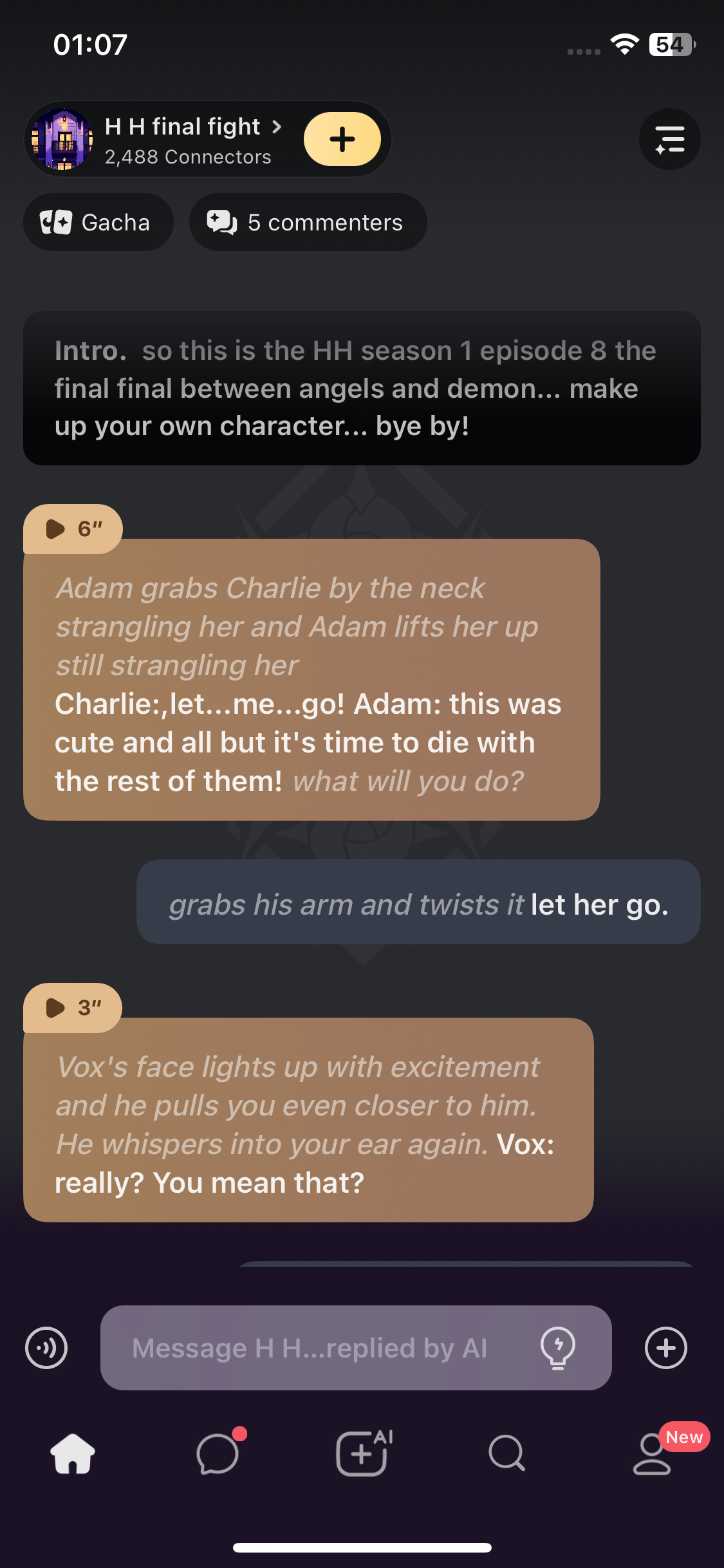 send message to ai chat bot H H final fight