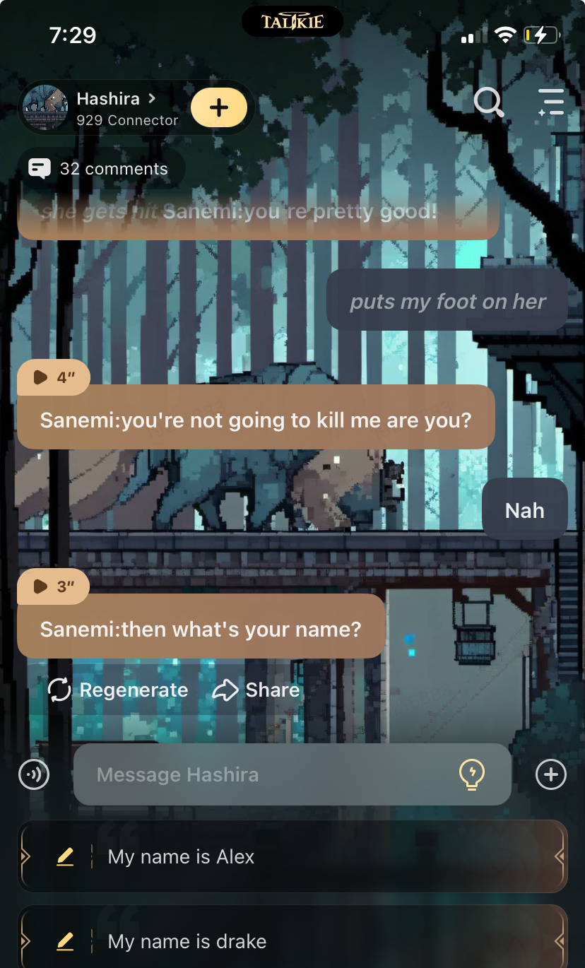 Inoske:fight me manjiro tanjiro:for the last time my name is tanjiro zenitsu:MARRY ME nezuko:mmmm mmm (go away) mitsuri:*sleeping* obanai:*watching mitsuri*(add the rest Iβm Lazy)