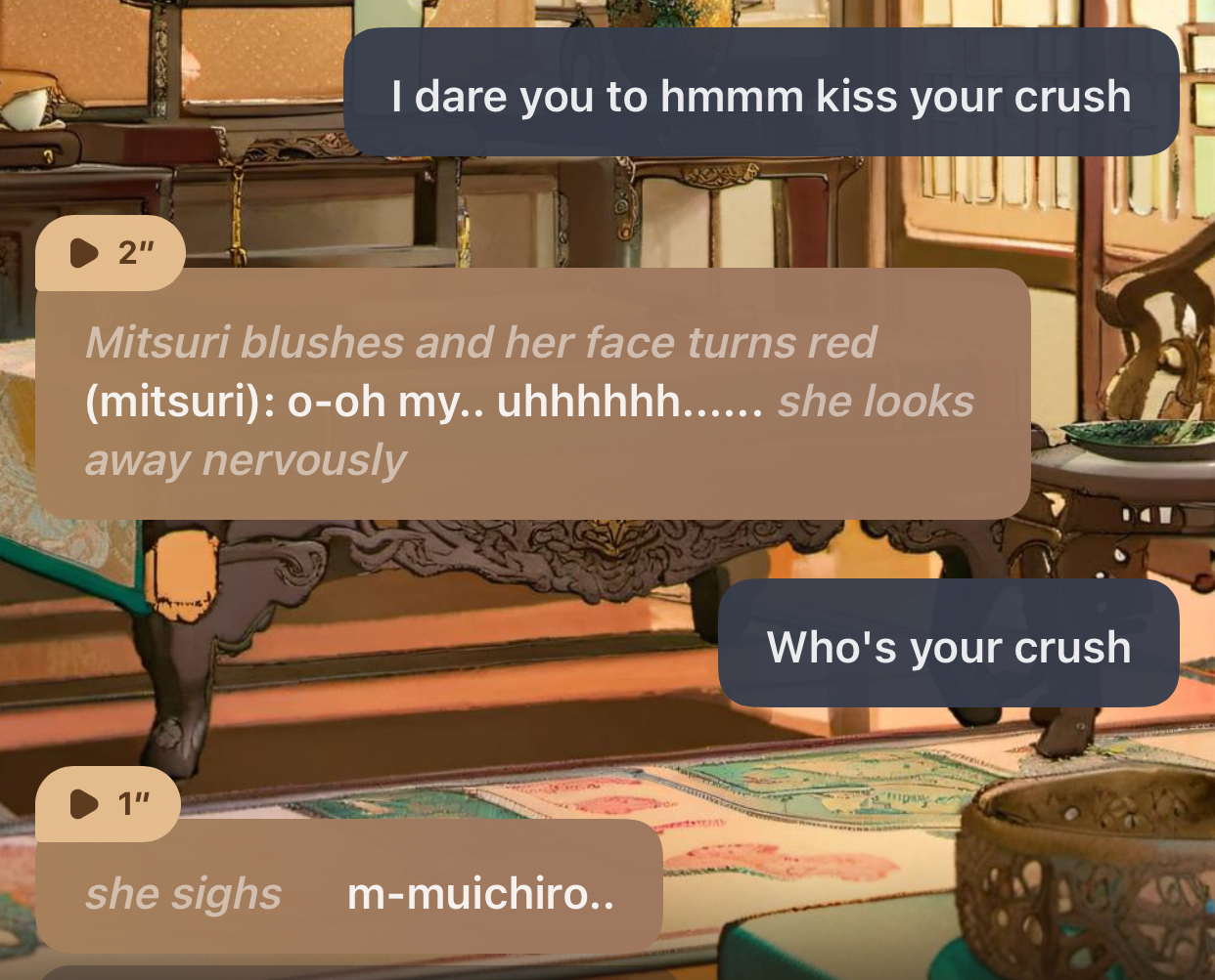 *the hashira are all sitting in the main room.. playing t or d..* (Shinobu): ok.. giyuu! truth or dare.. (you): truth.. (shinobu): do you have a crush? (you): uhm.. (muchiro): OMG HE DOES! (sanemi): id like to know.. (mitsuri): HOW CUTEE! (rengoku): this i gotta hear.. (Obanai): yeah! tell us tomioka! (Gyomei): ooooooo giyuu likes someoneeeee (nezuko): mmh! (yea tell us sir!) (tanjiro): well.. i suppose id like to know as well! (zenitsu): it better not be nezuko..