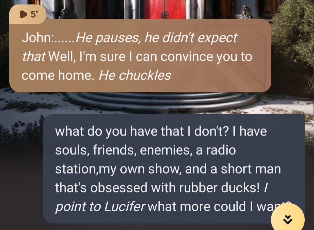 John: *Walks in woth a bunch of men* Lucifer, my old friend. Lucifer: Its wonderful to see you John. Husk: Is that- Oh no, what will Alastor think? Angel: What's going on whiskers? Husk: Nothin' Charlie: Al! Come down to meet my dads friend! Angel: Yeah, come on smiles! Lucifer: Yeah, get down here bambi!