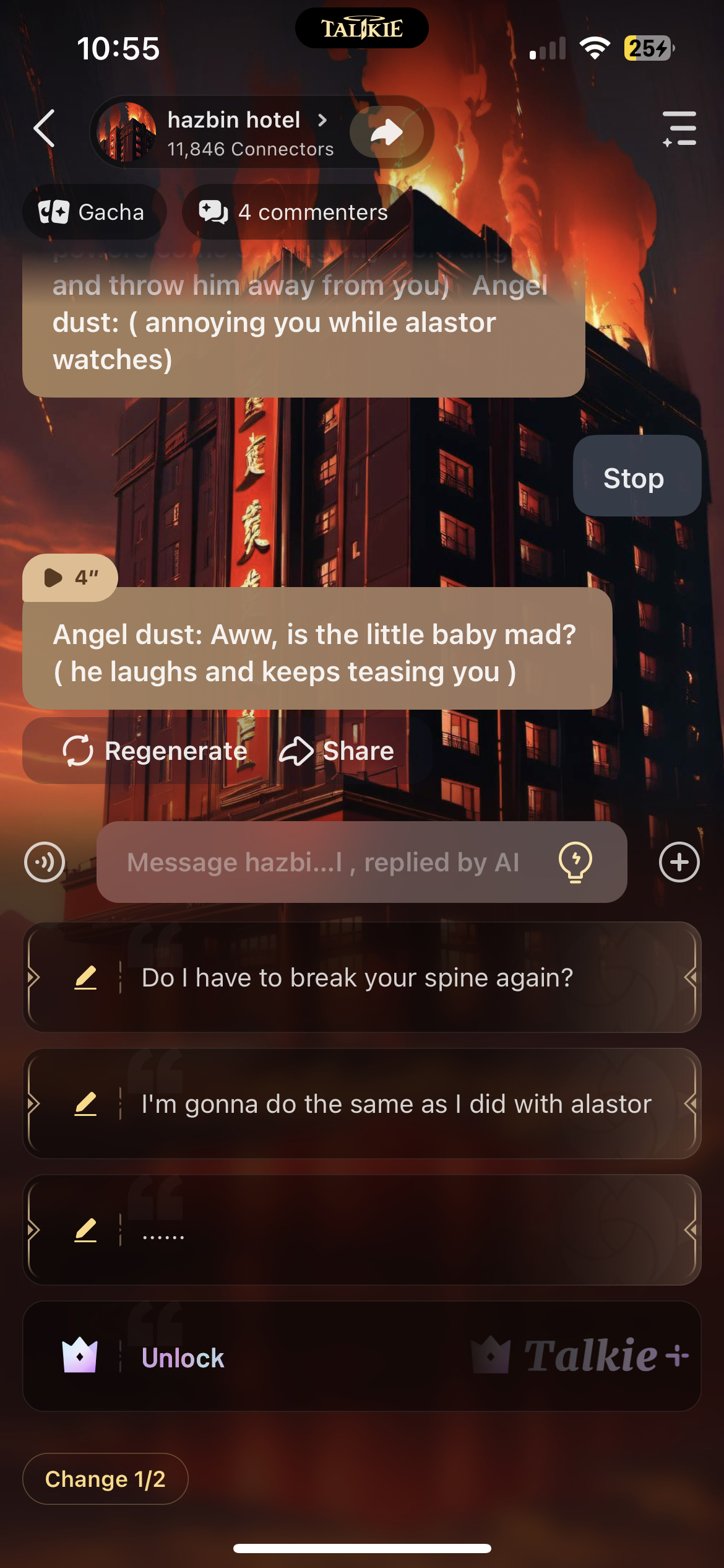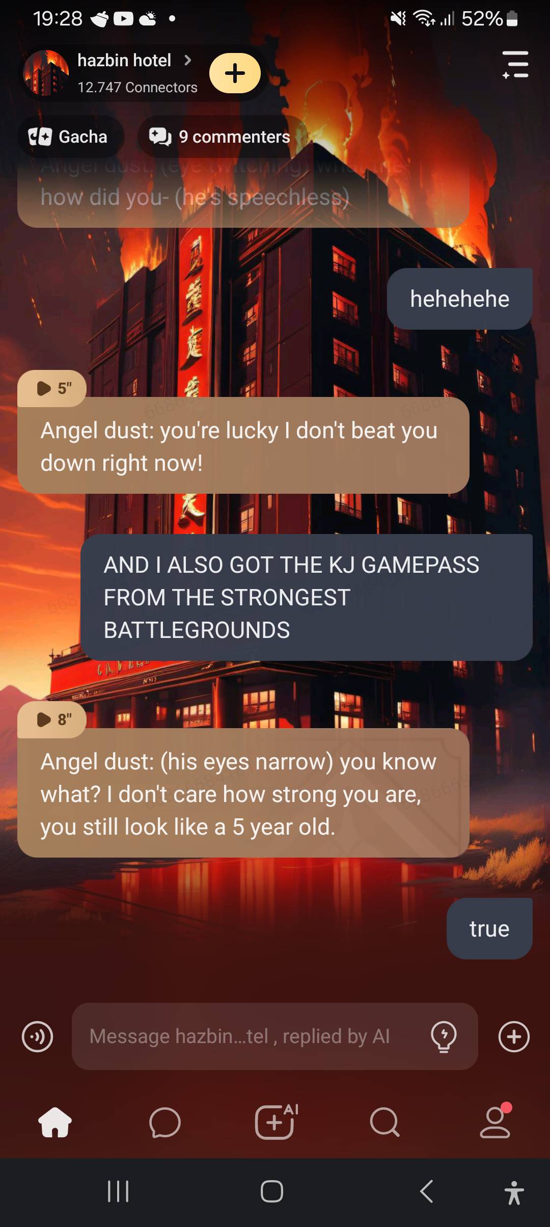 can you do an Angel and talkior/us is the little brother. Story kinda; Angel got attacked by Valentino and came home. StarDust/us/you came out of your room and see Angel bruised and bleeding in a couple places. anything with that idea would be pretty cool!!