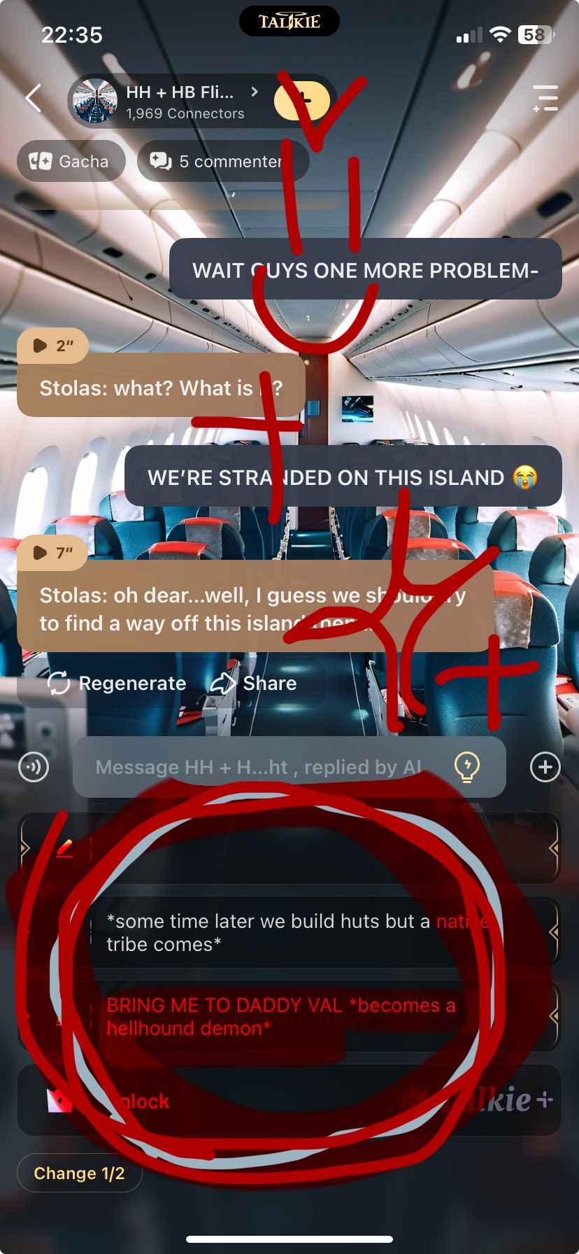 Millie: *trying to find a way to get blitz back to normal* Alastor: *is reading the pilot book to learn how to ride the airplane* Vaggie: *takes the microphone* ATTENTION PASSENGERS ! We are about to hit the twin towers, so please scream & freak out and panic AAAAAAAA- Everyone: *start screaming* Lucifer: *wakes up* AGH- *falls on floor* everyone: *looks at Lucifer* Stella: Ridiculous Stolas: I know right Everyone: *again start screaming and Stella & Stolas hug each other of fear and screaming*