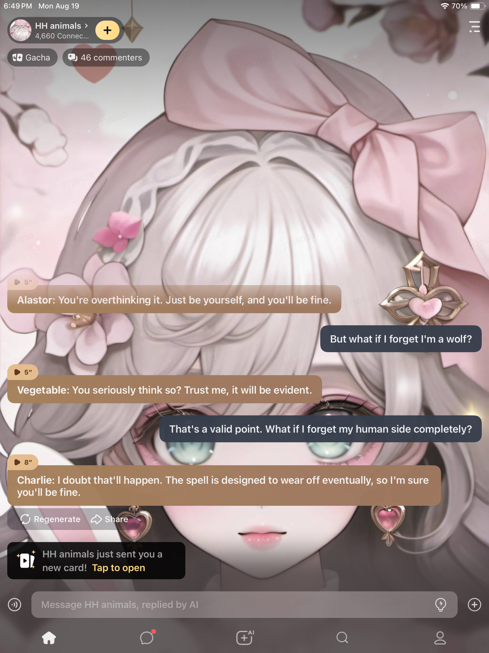 no Angel does just grab my arm well I said I am Alex the hacker demon and I said why is the door just locked now and she said what about we watch a romantic movie