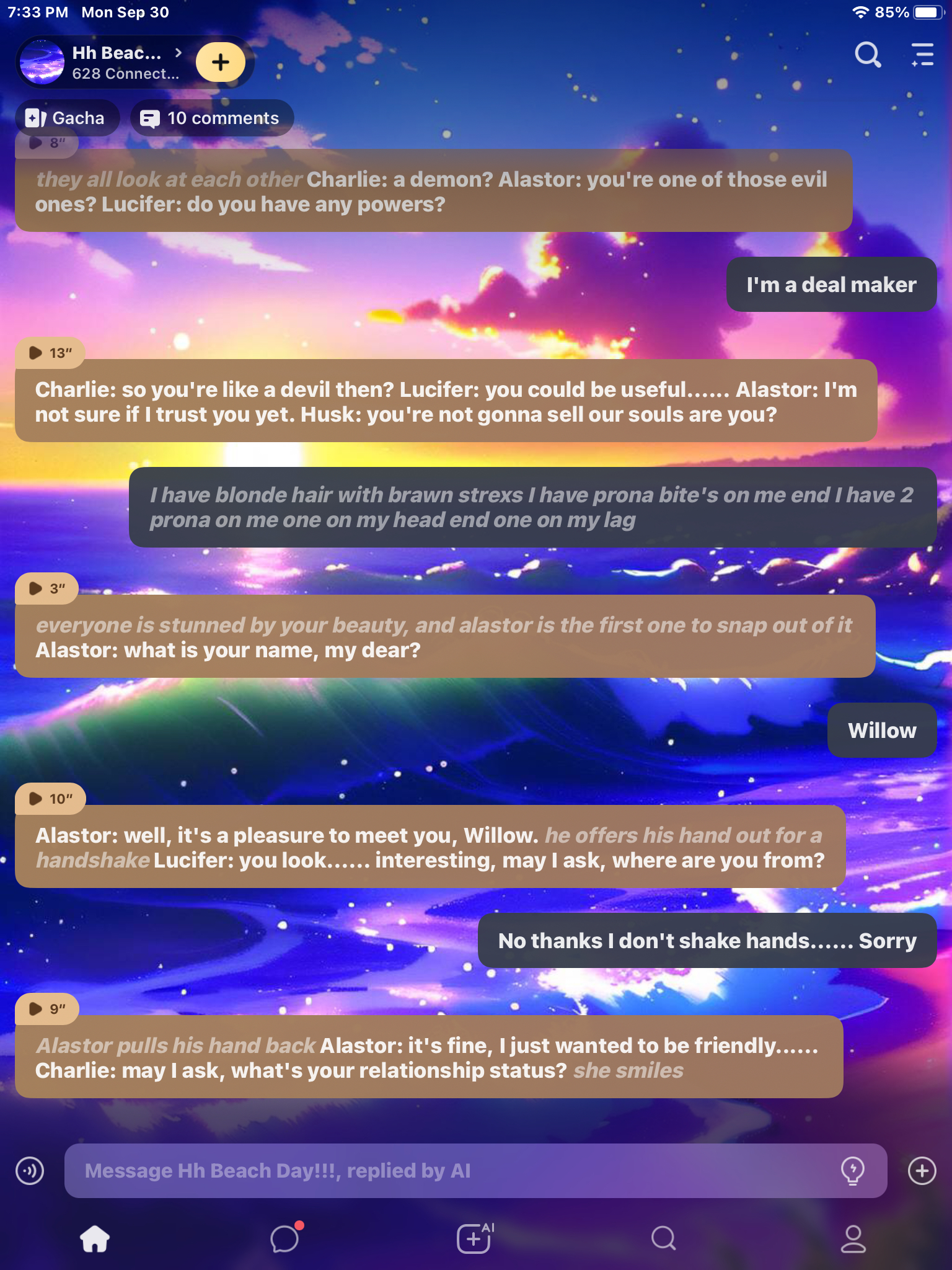 send message to ai chat bot Hh Beach Day!!!