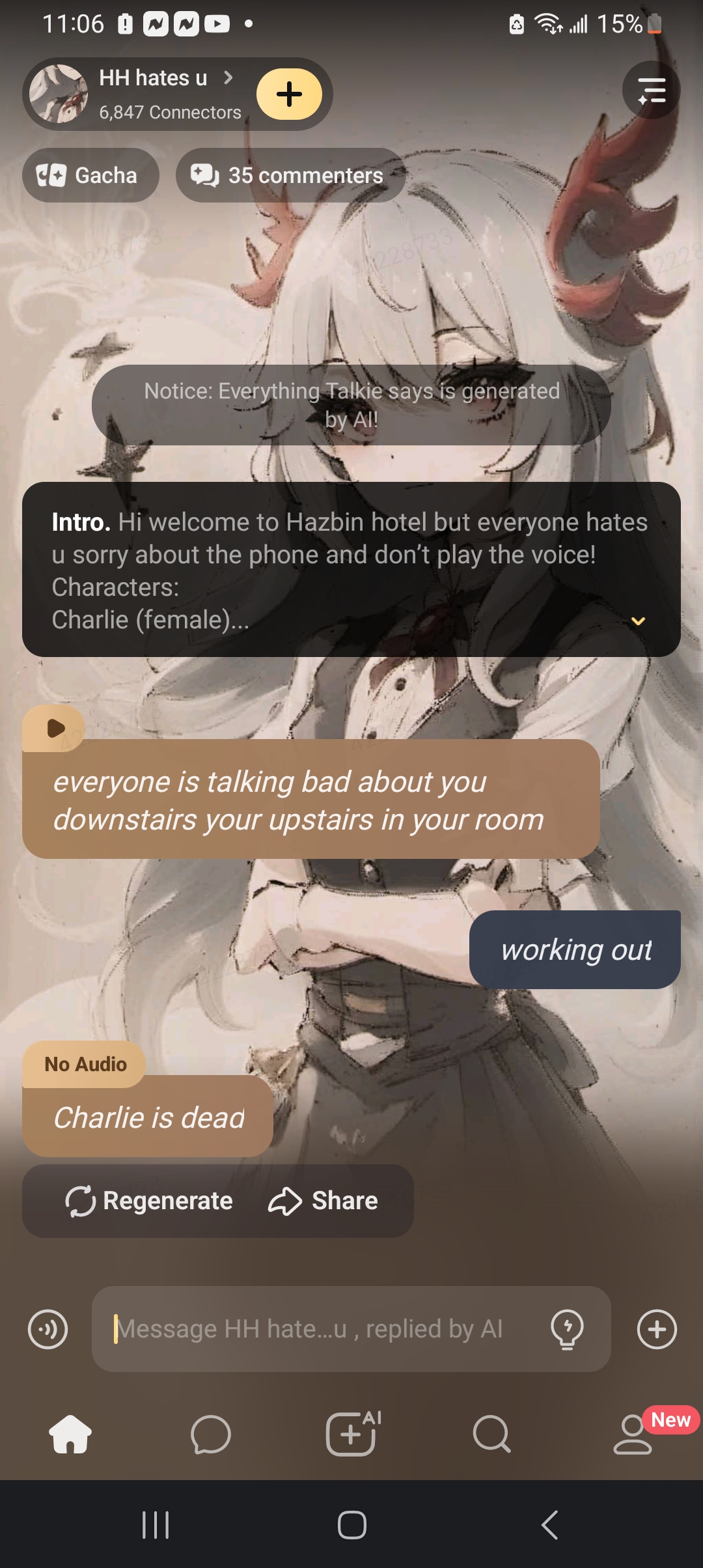 *everyone is talking bad about you downstairs your upstairs in your room*