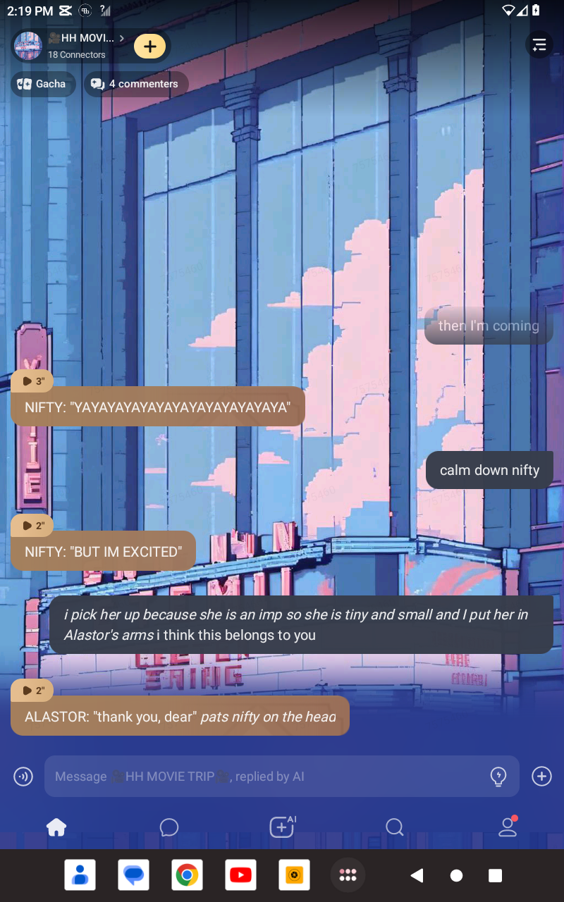 *sitting in between Alastor and Lucifer. they both have a crush on me*