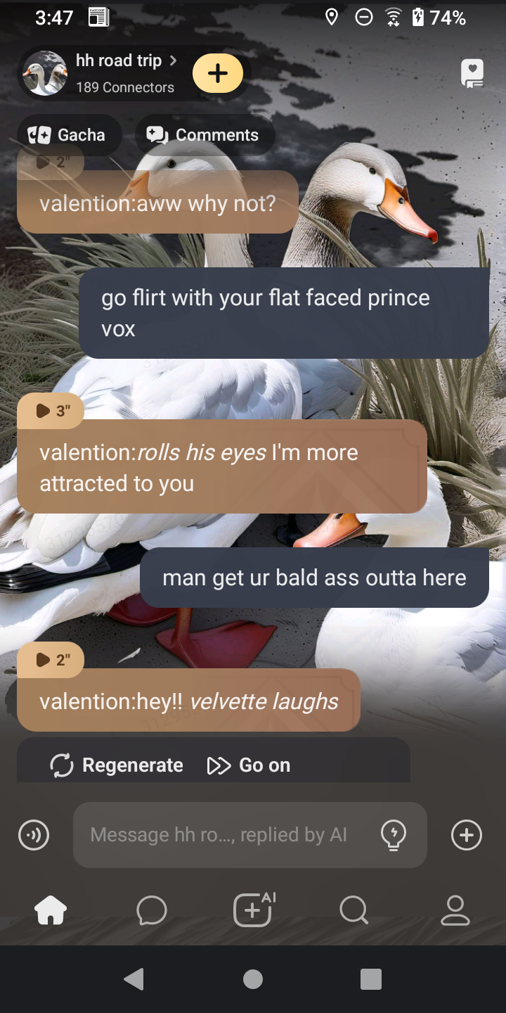 chat with ai character: hh road trip