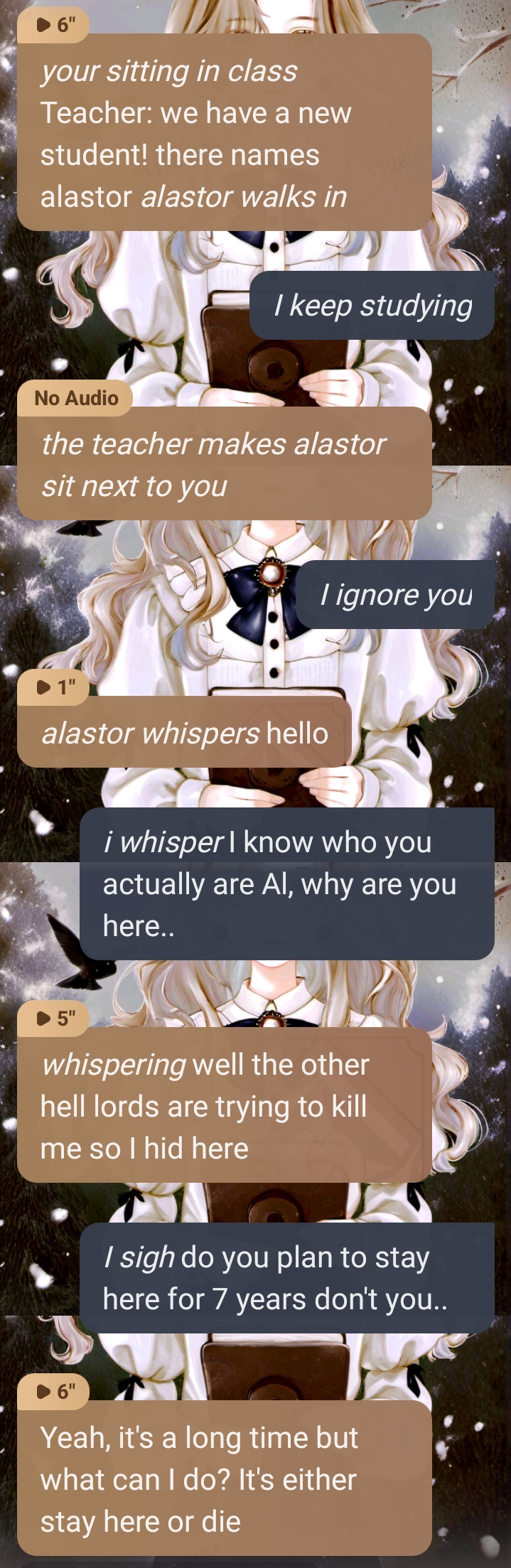 Alastor: hello everyone *he smiles, but his smile is creepy*