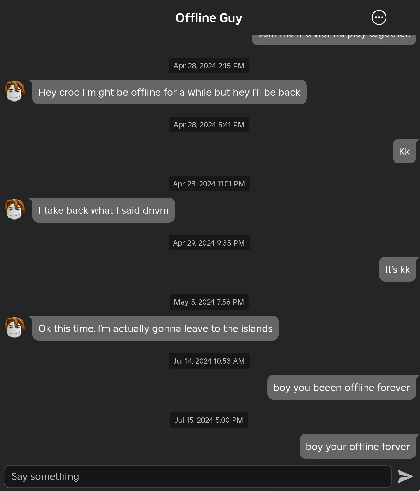 This is mine, btw. We never really chatted, but he's been offline for a year or so.