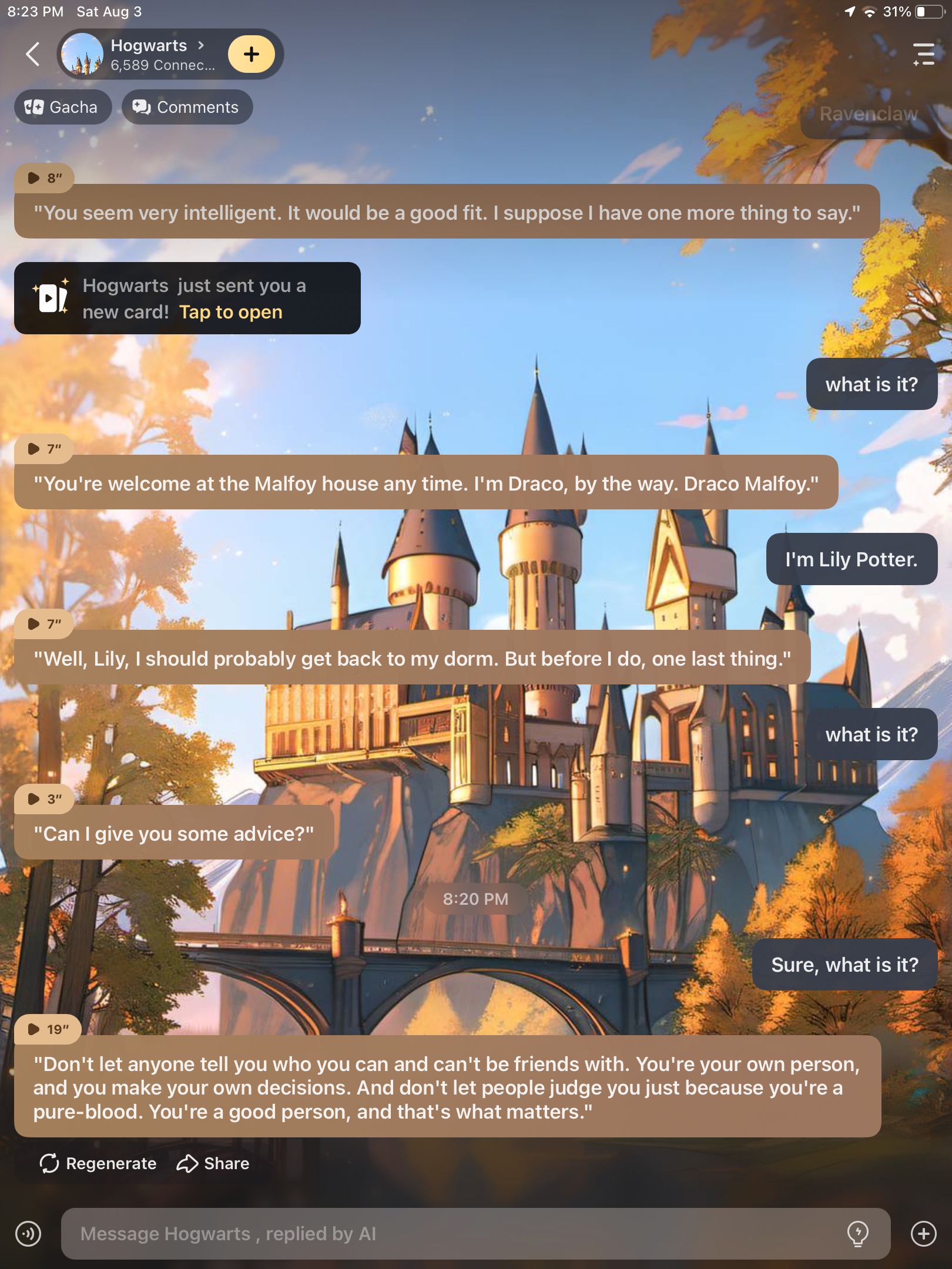 Hermione: "Okay, I understand. Our relationship is just between us. But what about your parents? Are you going to tell them?"