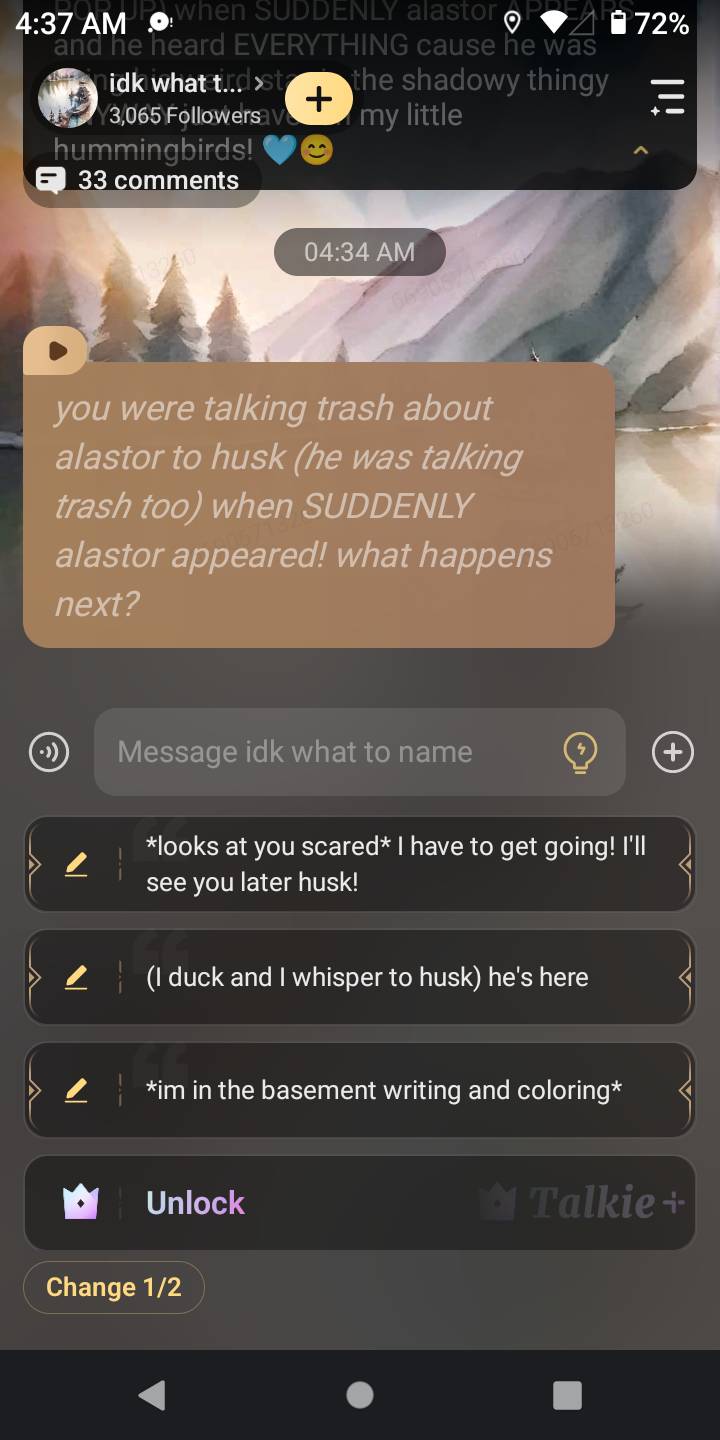 *alastor's smile drops instantly and he just stares at you*