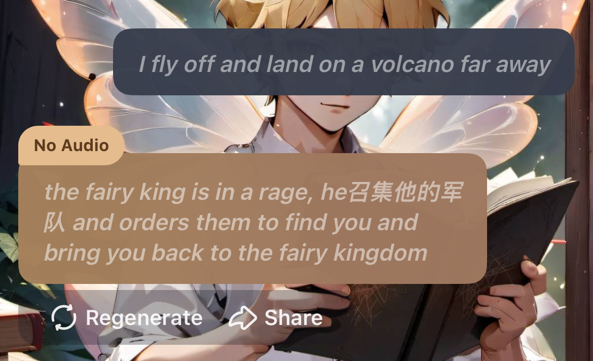 *The fairy king looks at me and rolls his eyes* fairy king: I see you are a stubborn one. You don't have to talk to me, but you will have to answer my questions. What is your name?