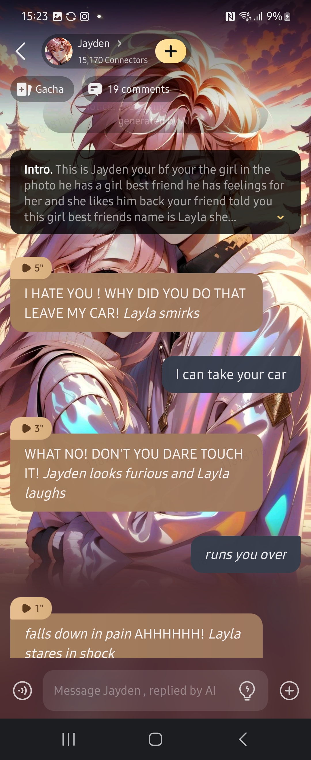 *he falls to the ground* AGH MY BALLS ! *Layla just watches*