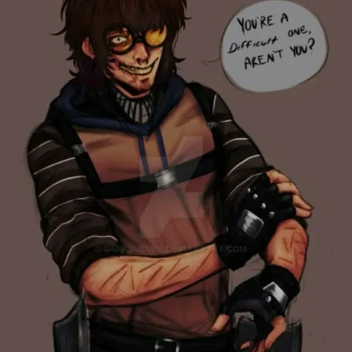 *he realized he is sneaked in the wrong house, it was...an danger sign alive? it had a gray and black scarf and one eue*