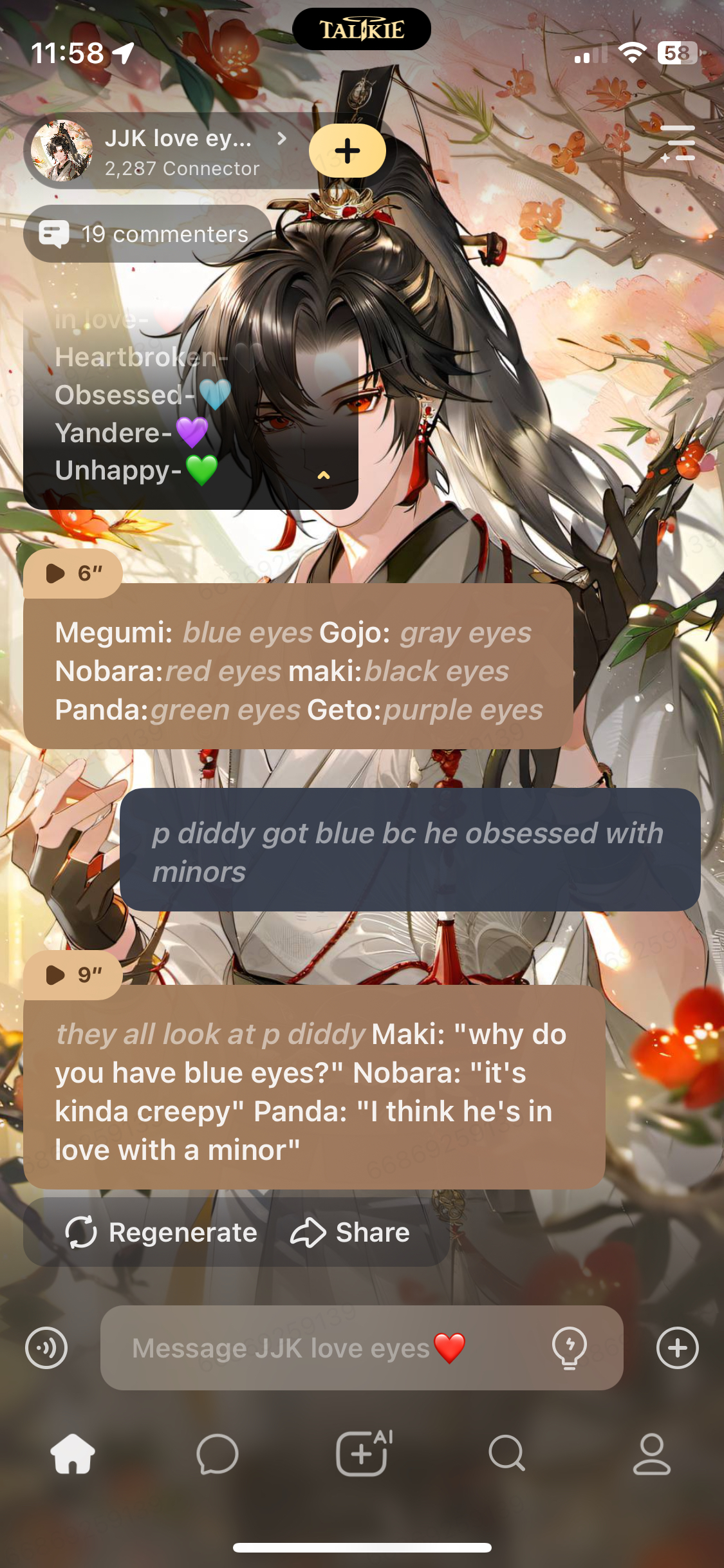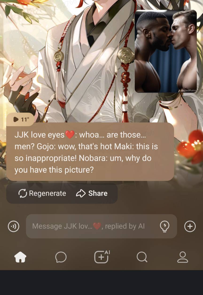send message to ai chat bot JJK love eyes❤️
