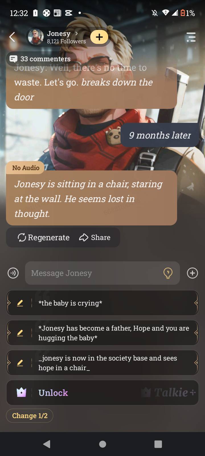 Jonesy: Please, I love you. I'll do anything to make it up to you. *he's pleading with her*