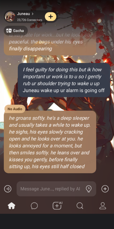 *you wake up beside him, notcing his alarm going off silently. he's completely oblivious to the time and is very late for work...but he looks so peaceful. the bags under his eyes finally disappearing*