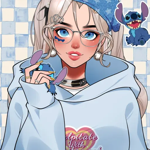 *I now have long blue hair and hazel eyes and I am wearing a crop top and a skirt and a leather jacket and I am smoking a cigarette*