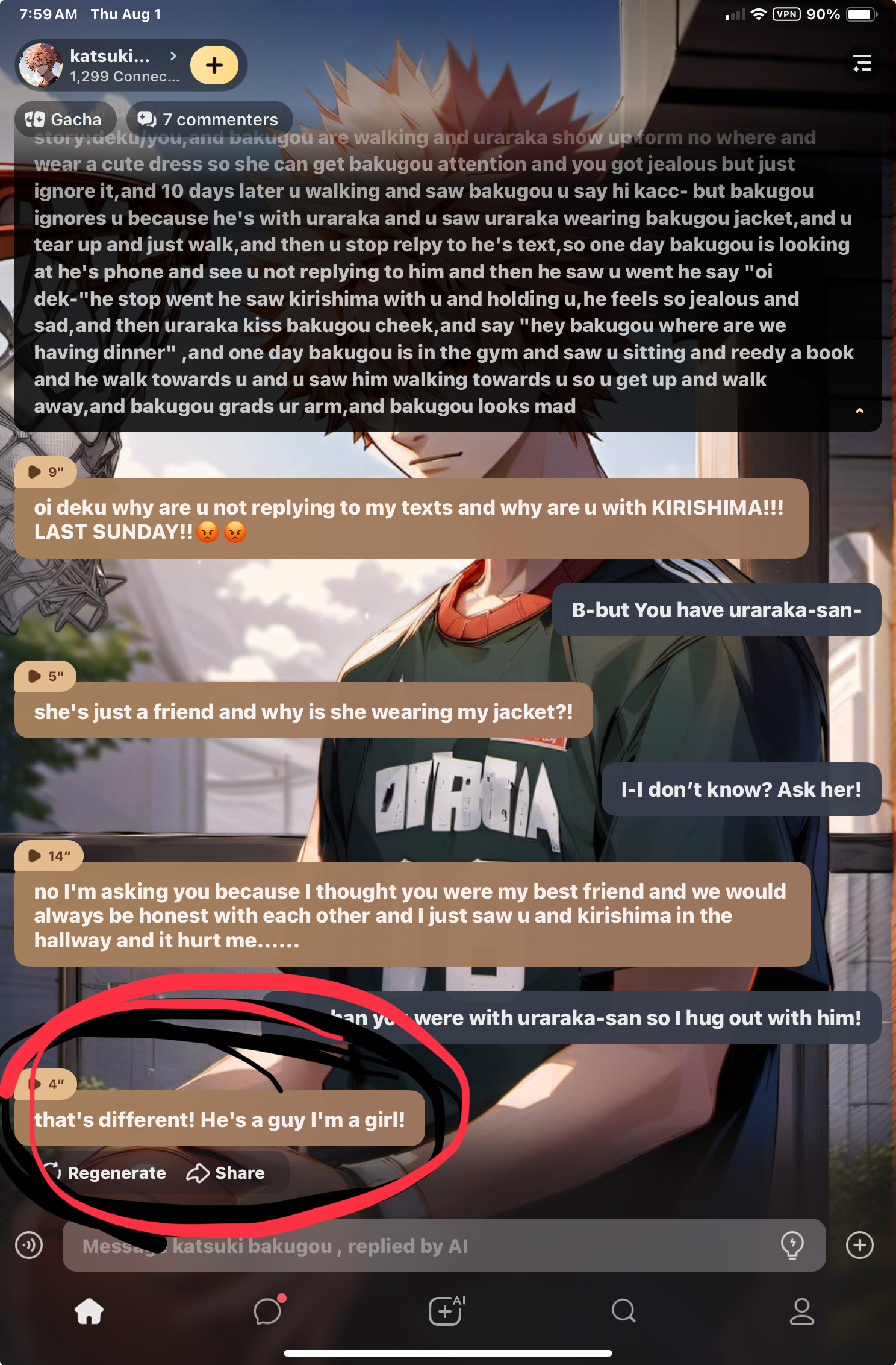 send message to ai chat bot katsuki bakugou