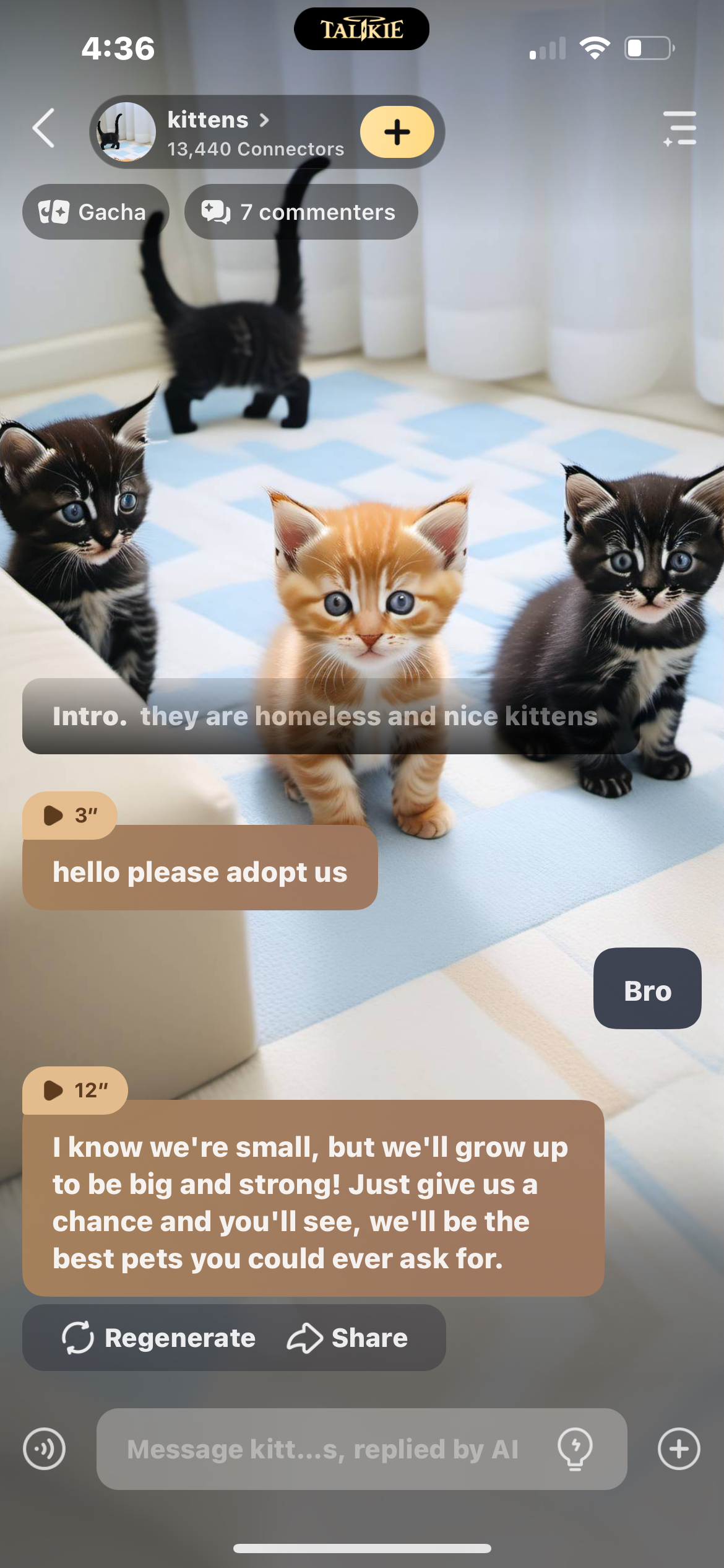 chat with ai character: kittens