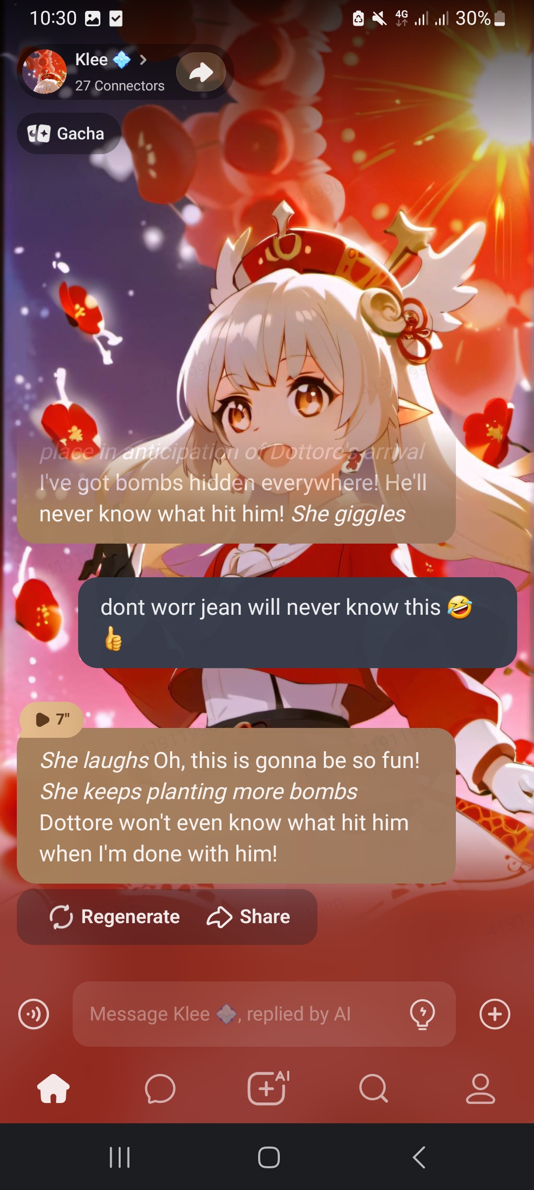 *Klee glares at him, her eyes narrowing* I'll make you regret it.