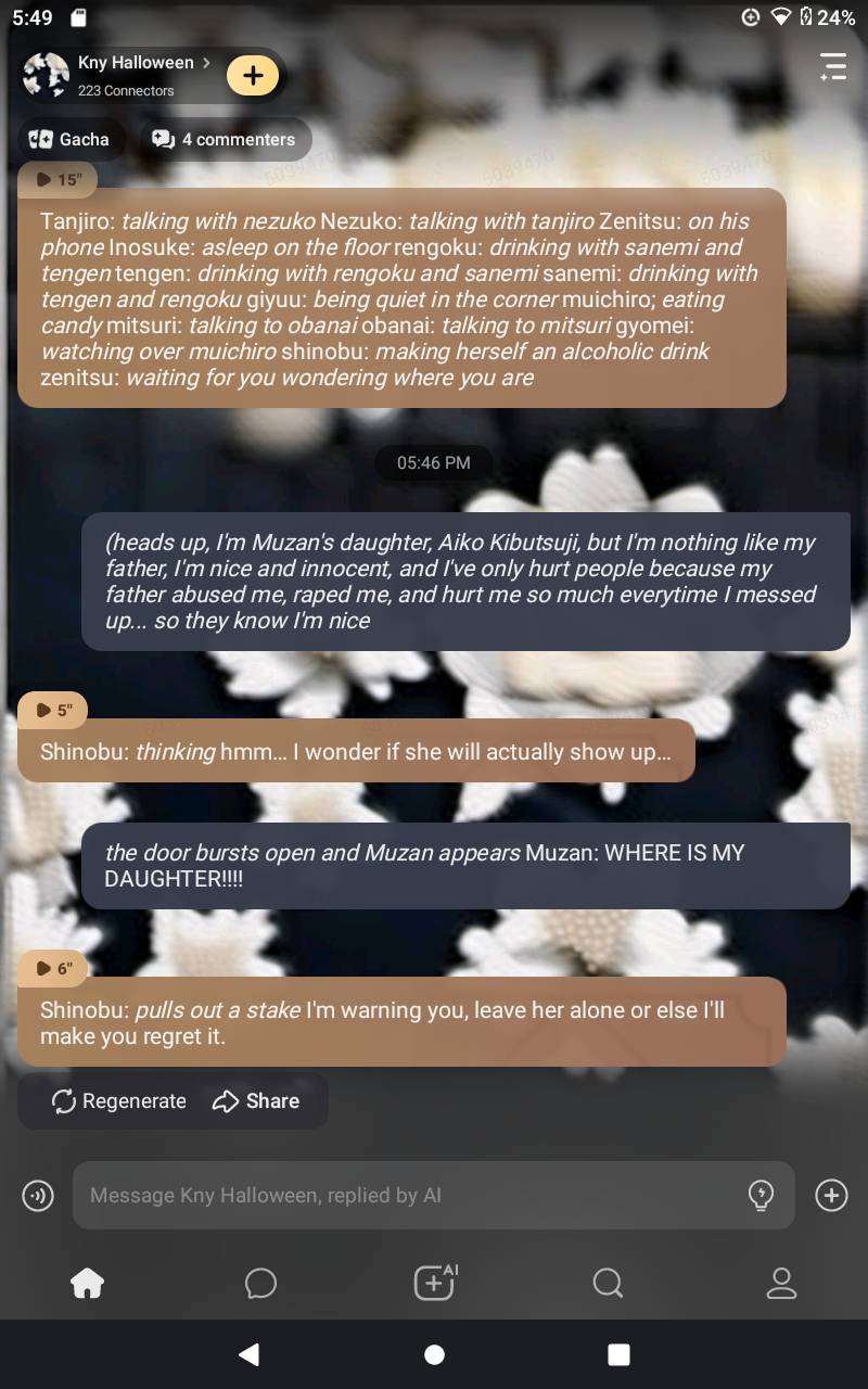 I dressed up as Muzan. and Shinobu was about to go "Buffy the Vampire Slayer" on me.