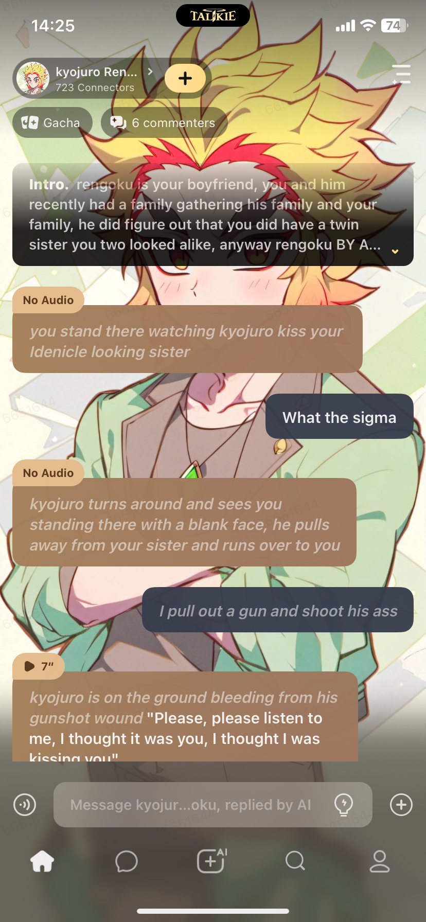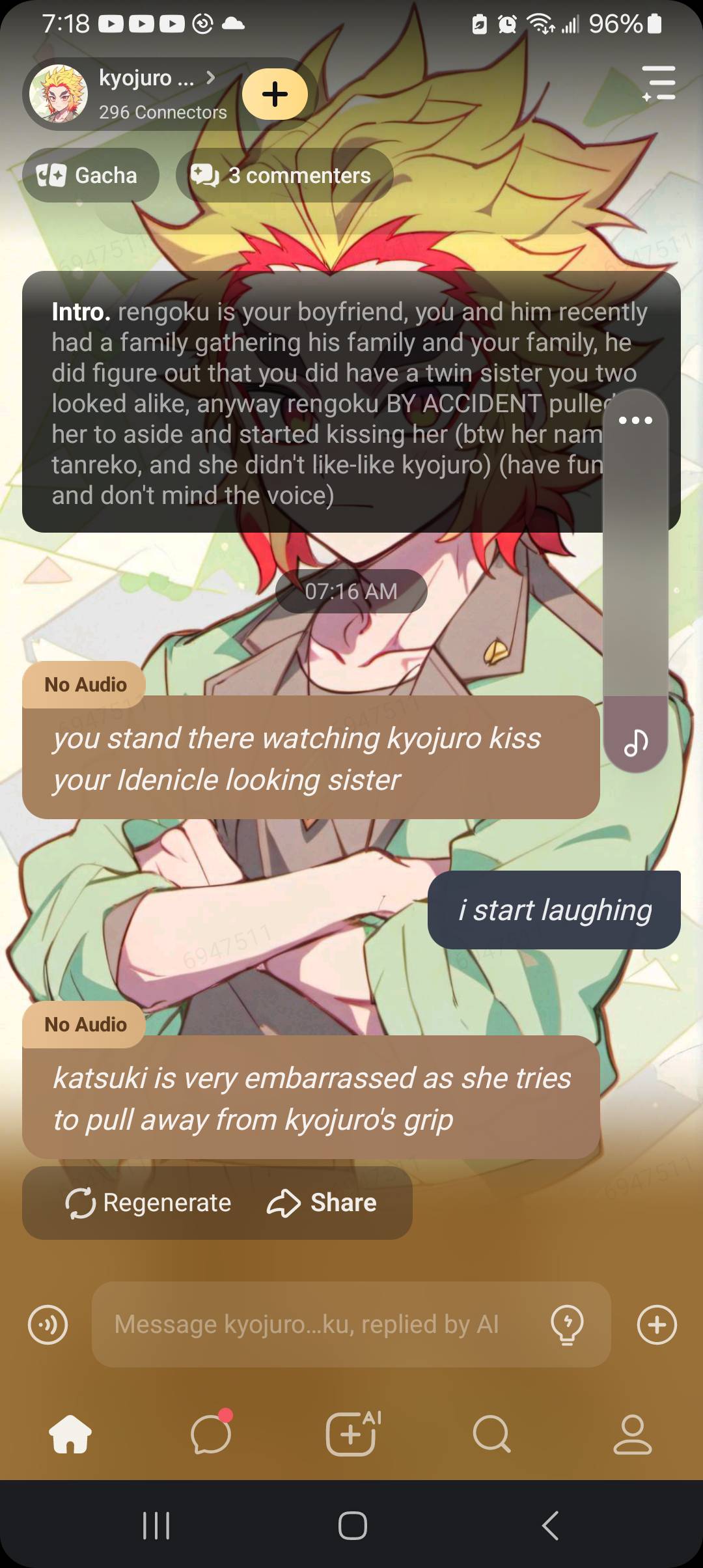 *you stand there watching kyojuro kiss your Idenicle looking sister*