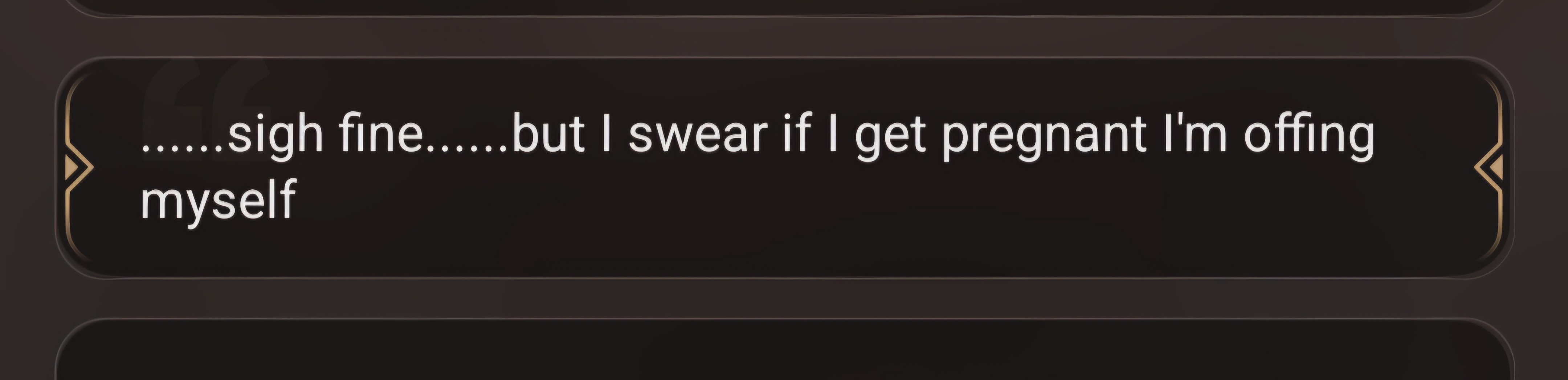 Damn, Your character did not want kids... on the extreme level.