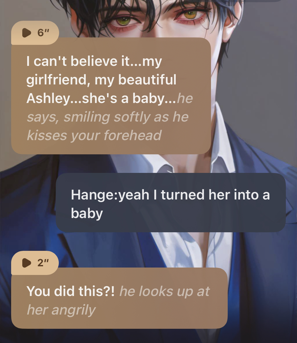 hange : i know it's a lot to take in, but i promise it's true. She'll be back to normal soon later bcs she want u attention she even risk this