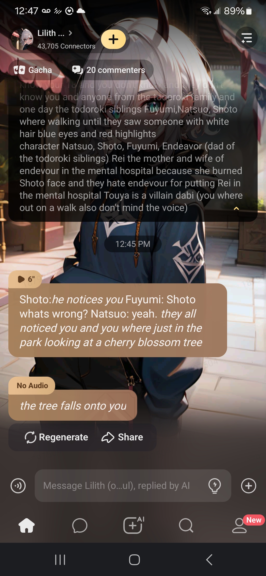 Shoto:*he notices you* Fuyumi: Shoto whats wrong? Natsuo: yeah. *they all noticed you and you where just in the park looking at a cherry blossom tree*