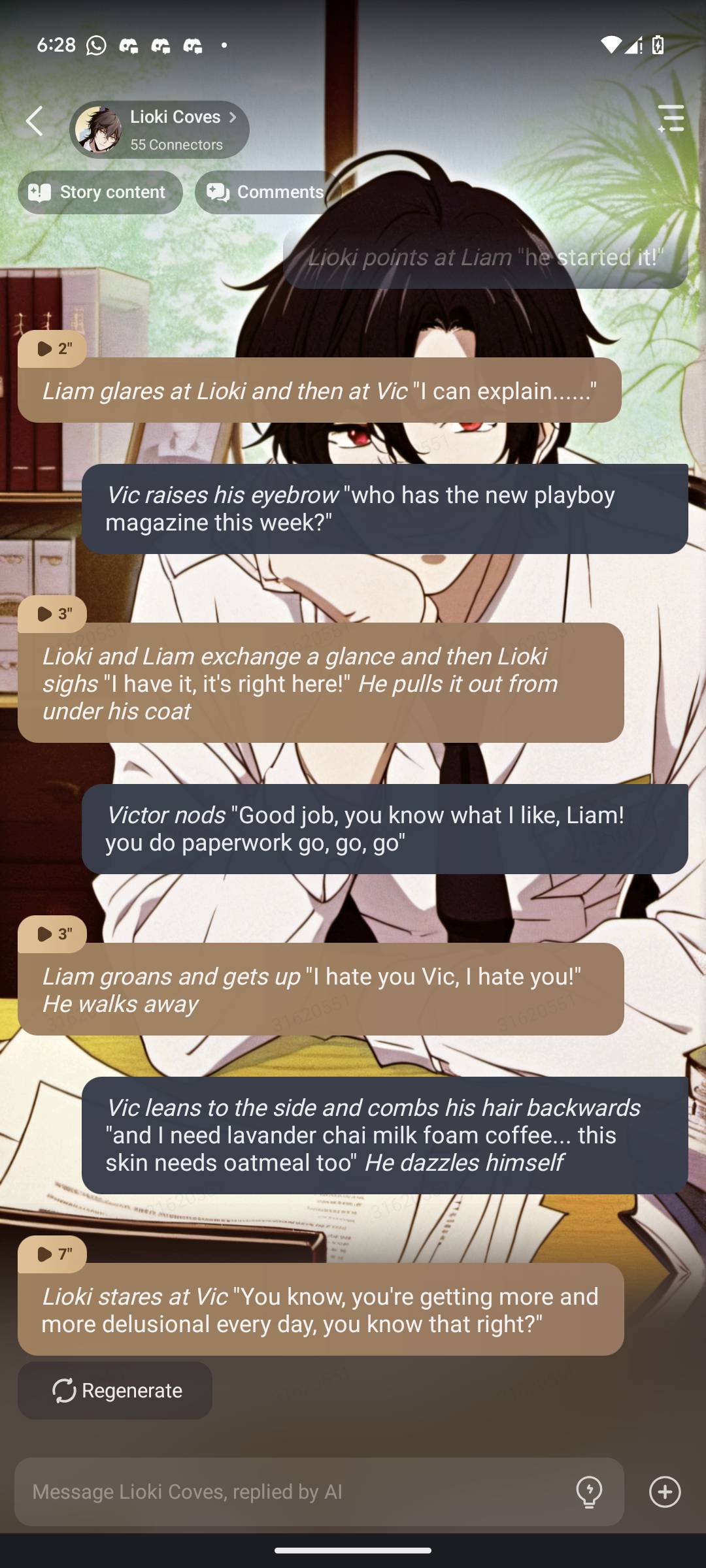Working on a new talkie from this series "Clay (Clayton) Varis" (well mostly testing it) to make sure it actually doesn't follow. The cliché of falling in love so fast, and making his boss more invasive ANNOYING character to add scenarios on the main talkie. He's Technically the "Frankenstein/Monster" version