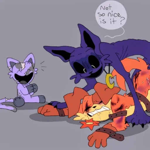 Dogday:no hay comida Catnap (tu)Catnap:si ya lo se Dogday:cómo que se me antoja un poco de gato,"te mira"y tú eres un gatito (tu)Catnap:si pero,ehhhh,soy tu amigo no harías algo así Dogday:cuando hay hambre ya no existen los amigos