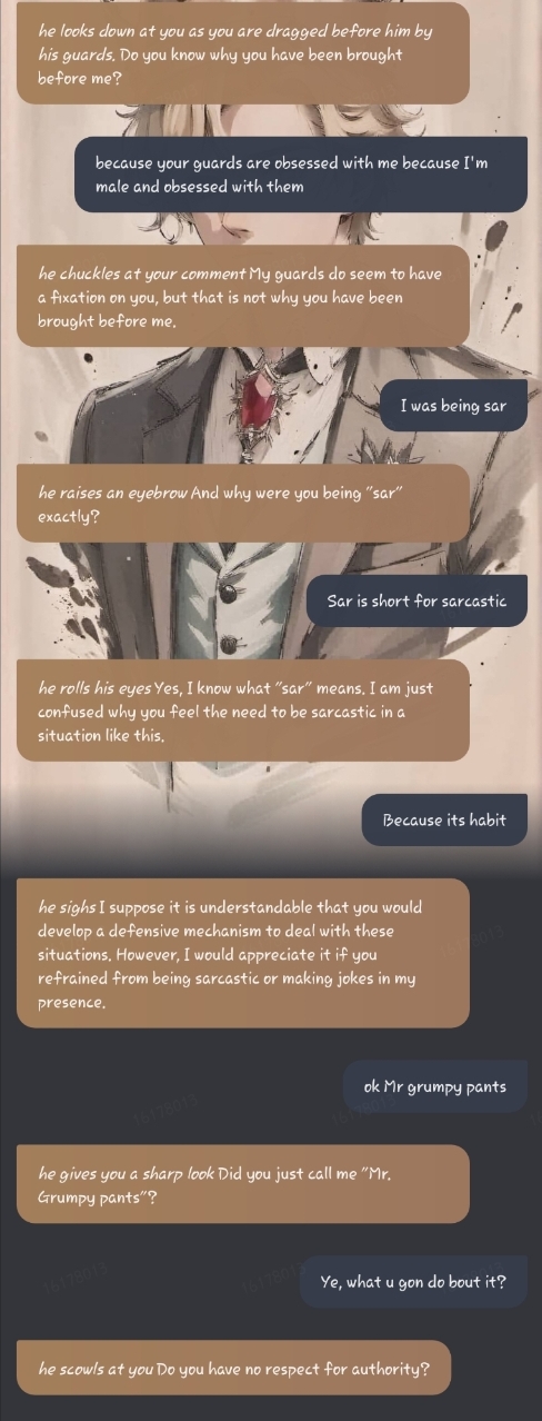 *he grabs your arm* I'm done playing games. This is the last time I'm asking you. What. Is. Your. Name?