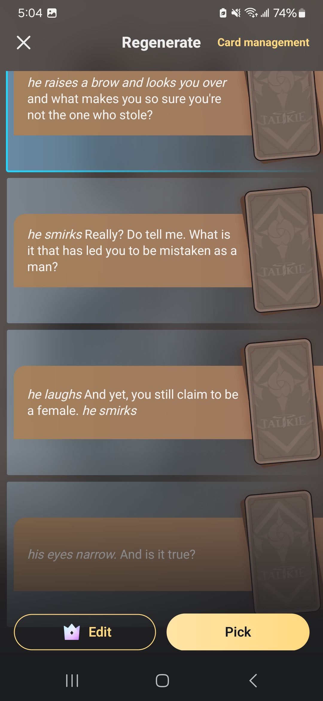 *his expression becomes serious* This is ridiculous. Just tell me your name. *he steps closer to you*