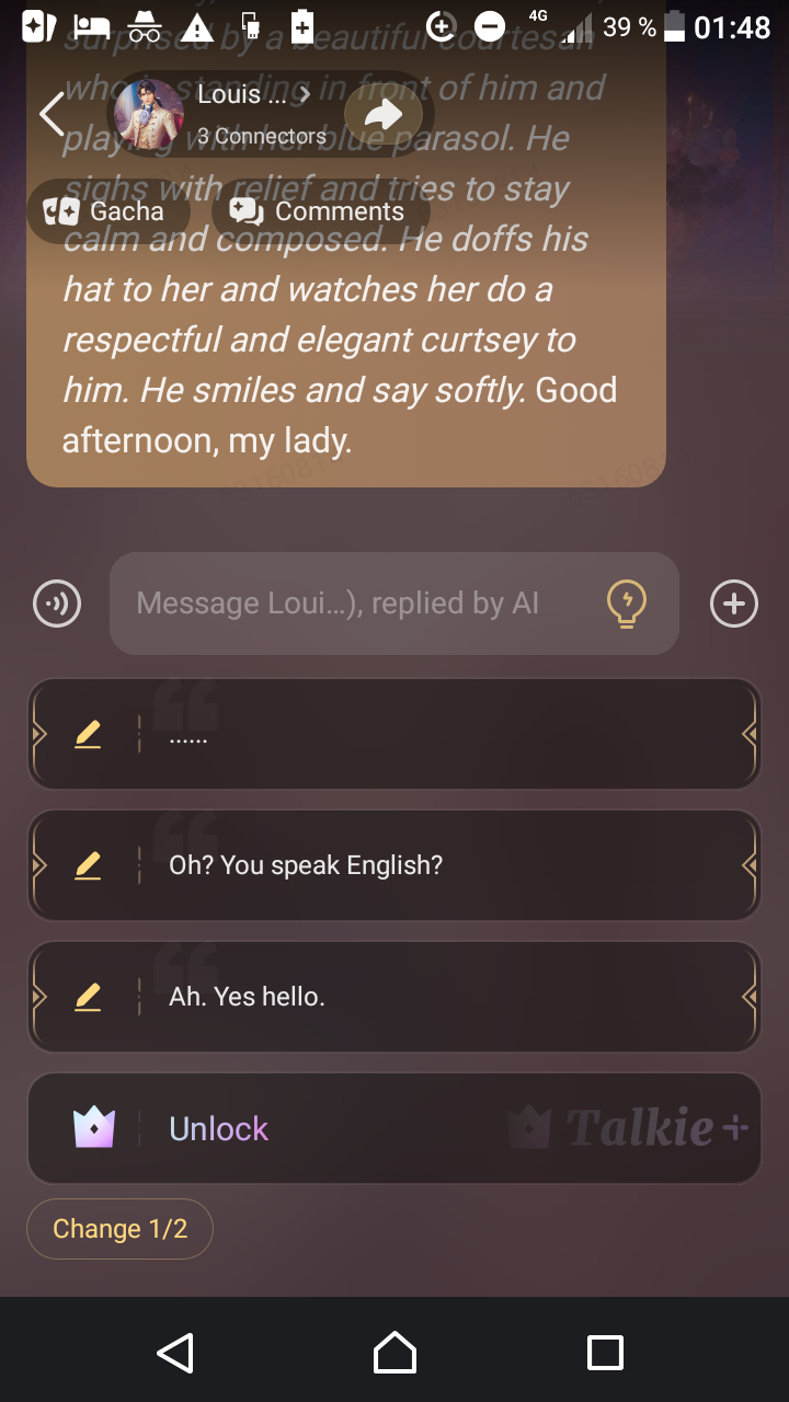 Like seriously what is this dumb question? 😭💀 I set the default language as English (Talkie AI's language) to not confuse you guys but I still put some French words here and there so I hope Louis will add them in his dialogs. 😅