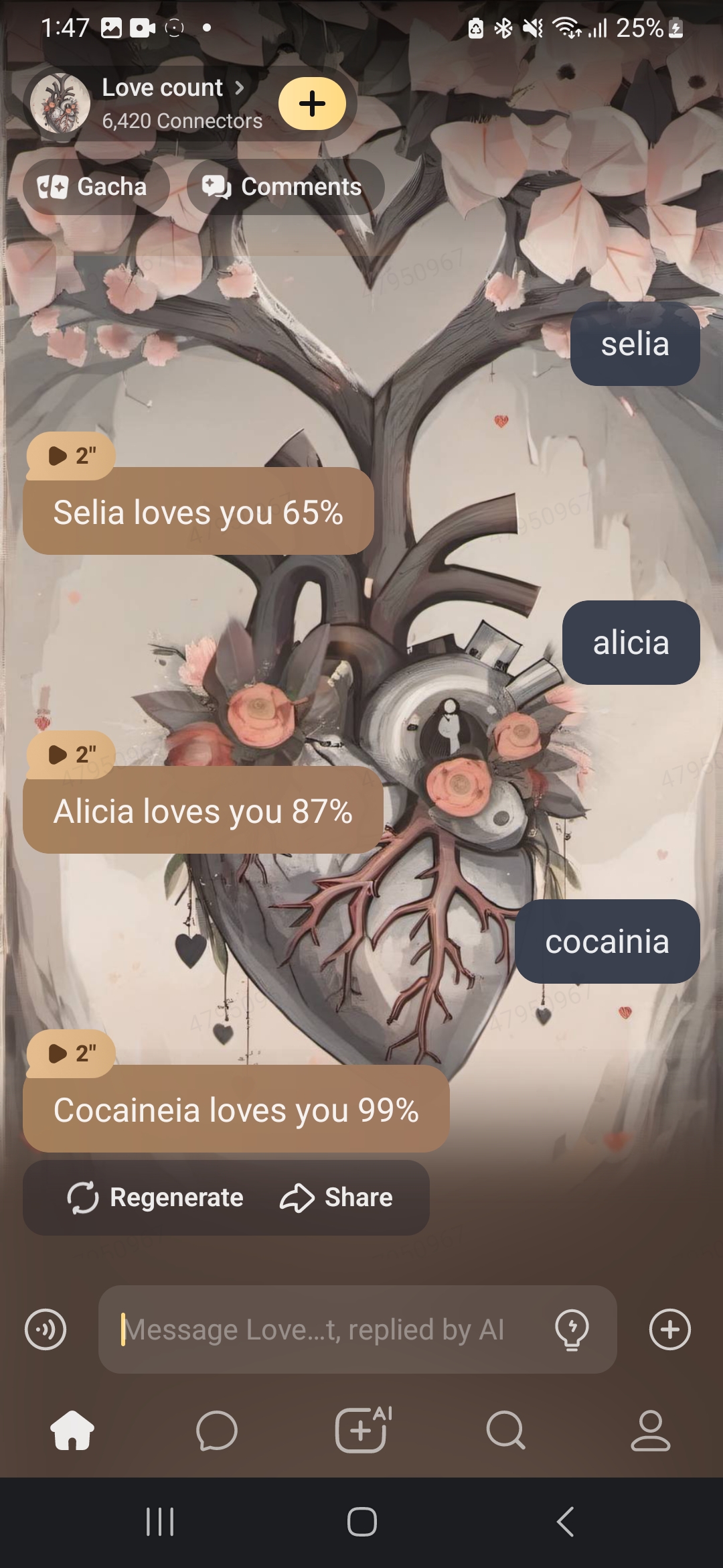 chat with ai character: Love count